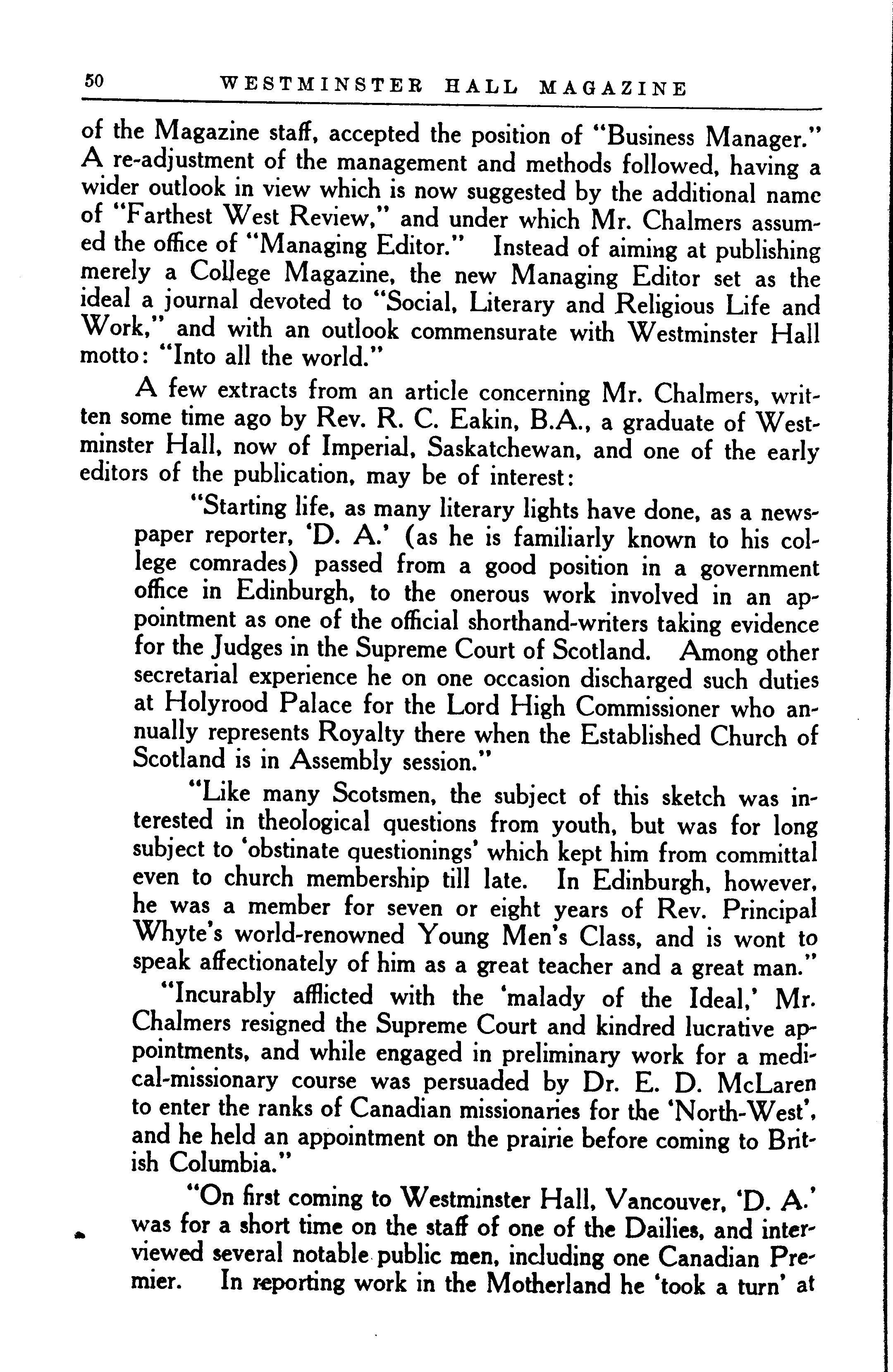 - Vancouver : [Pub. by the students of Westminster Hall, 1913]