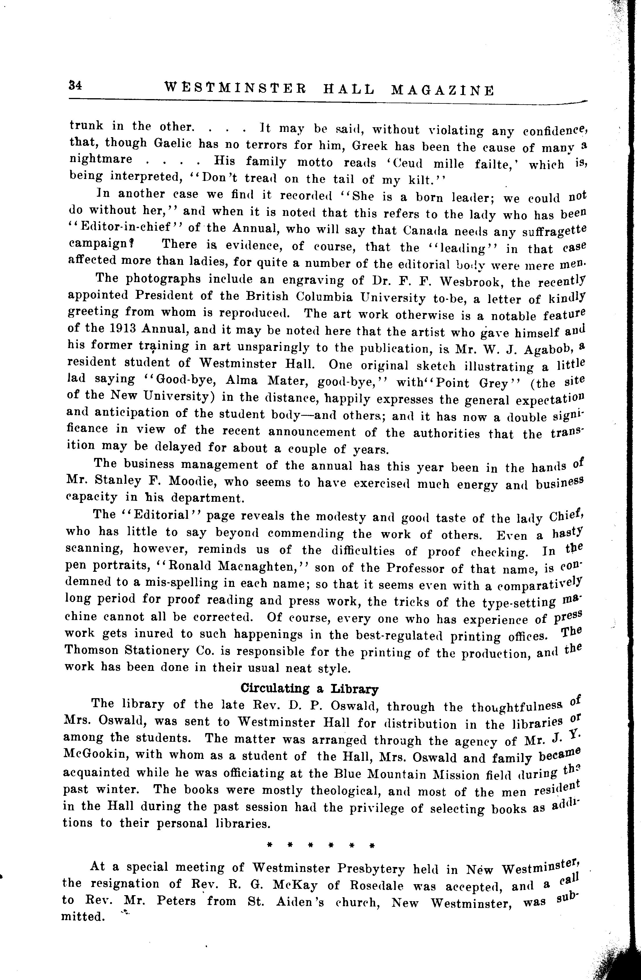 - Vancouver : [Pub. by the students of Westminster Hall, 1913]