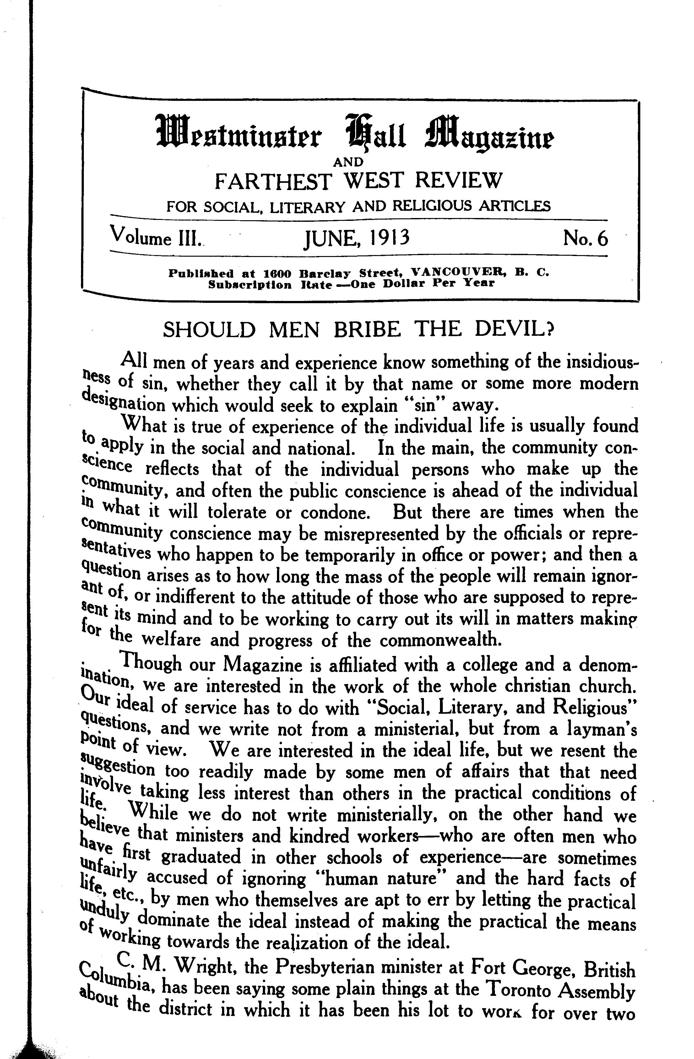 Westminster Hall magazine and farthest west review [Vol. 3, no. 6 (June 1913)]