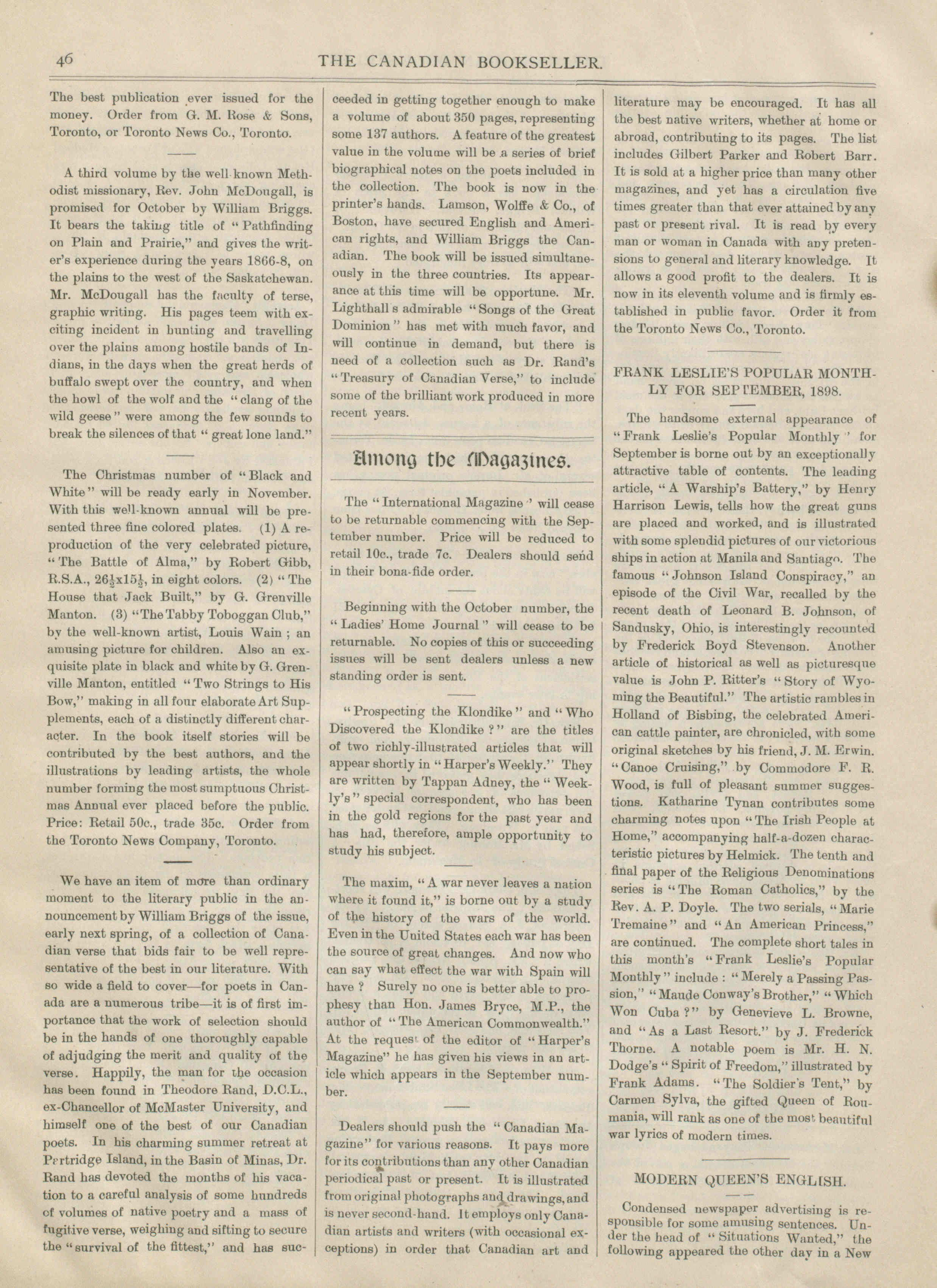 - The Canadian bookseller & library journal [Vol. 11, no. 6 (Sept. 1898)]