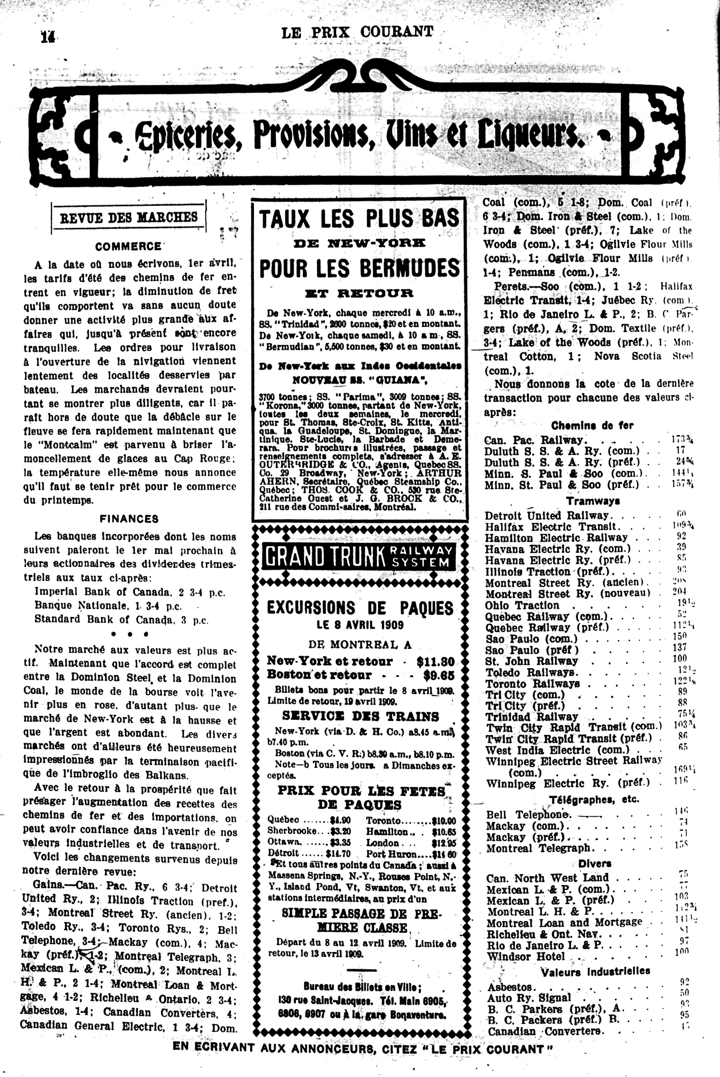 Le prix courant : [Vol. 42, no 14 (2 avril 1909)]
