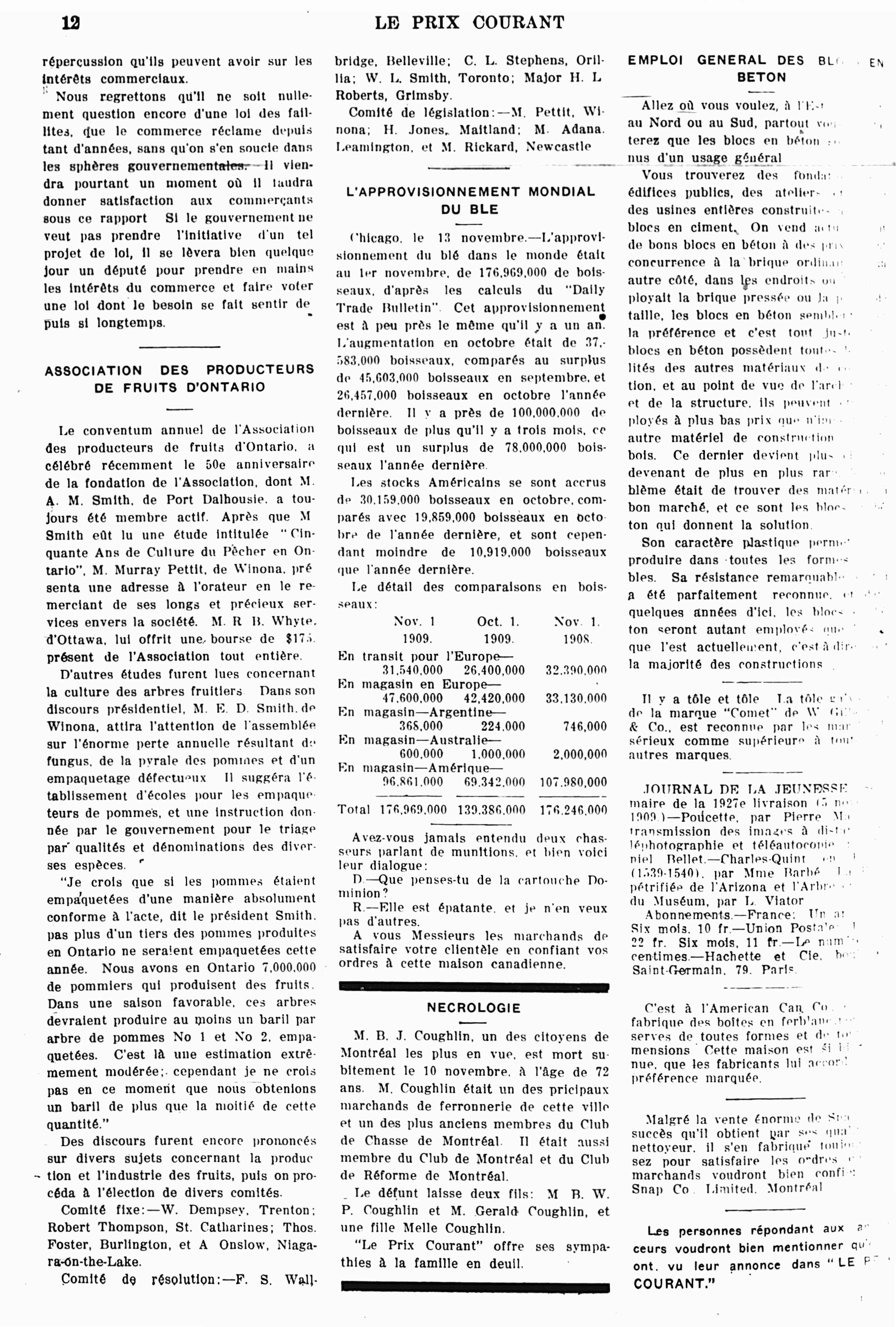 Le prix courant : [Vol. 42, no 47 (19 nov. 1909)]