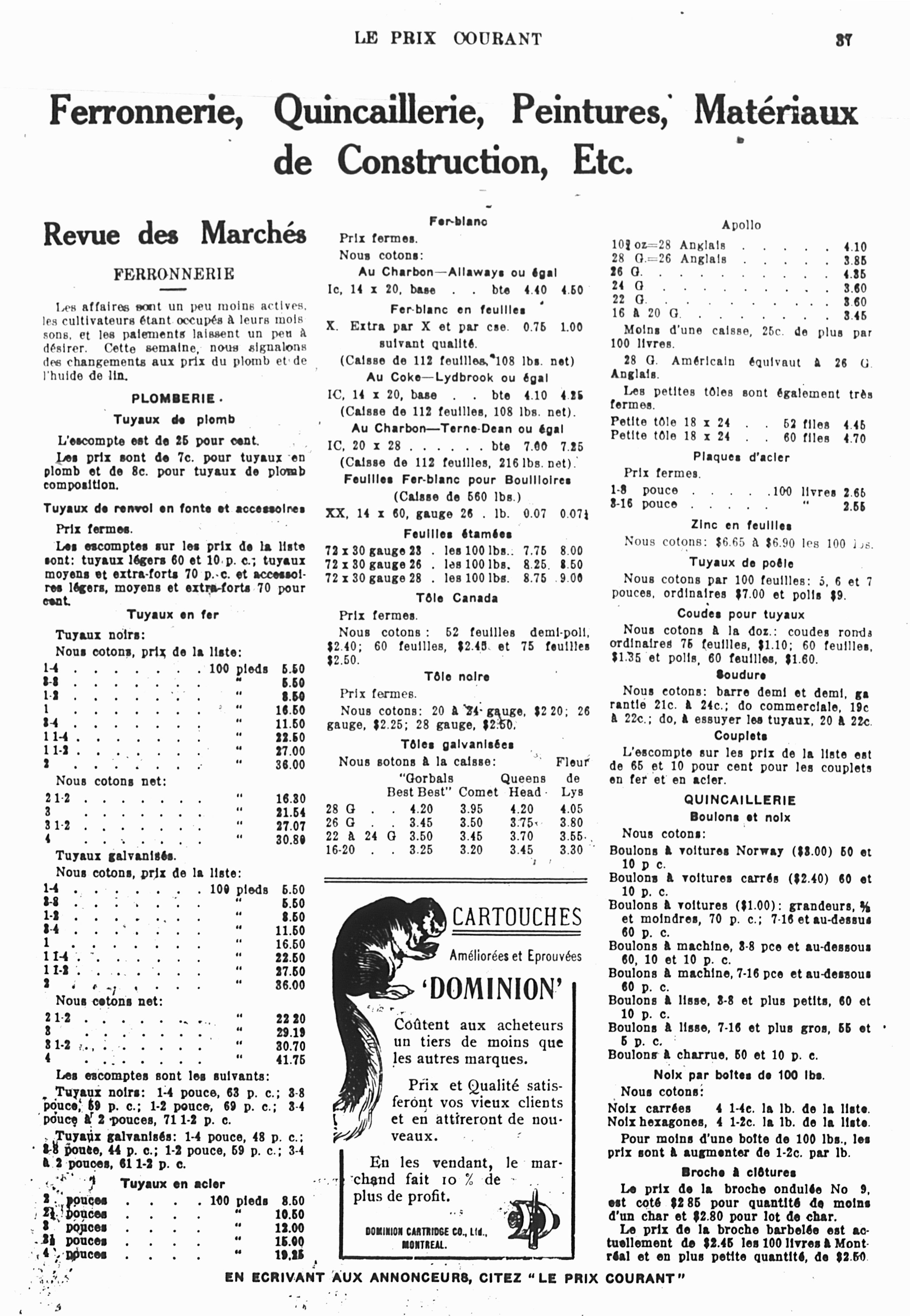 Le prix courant : [Vol. 43, no 30 (29 juil. 1910)]
