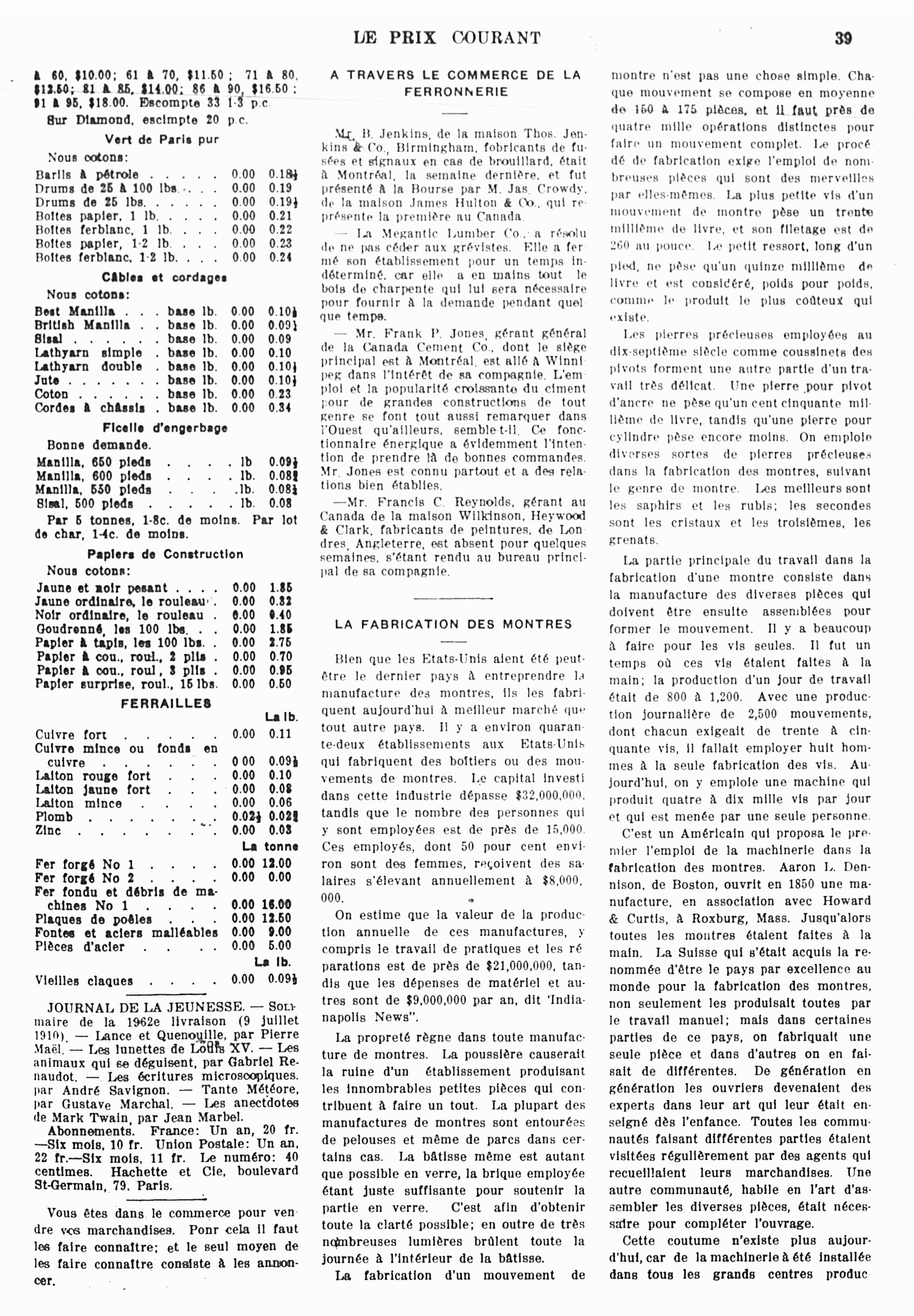 Le prix courant : [Vol. 43, no 30 (29 juil. 1910)]