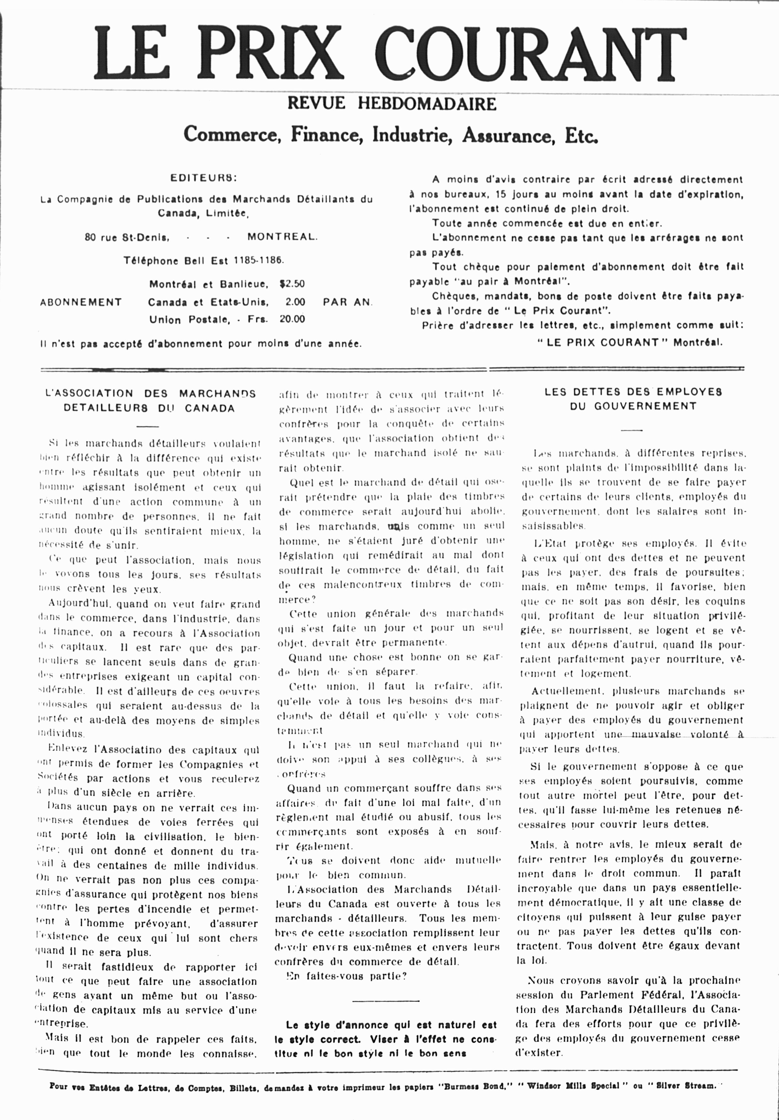 - Montréal : Compagnie de Publications des Marchands Détaillants du Canada, [1910]
