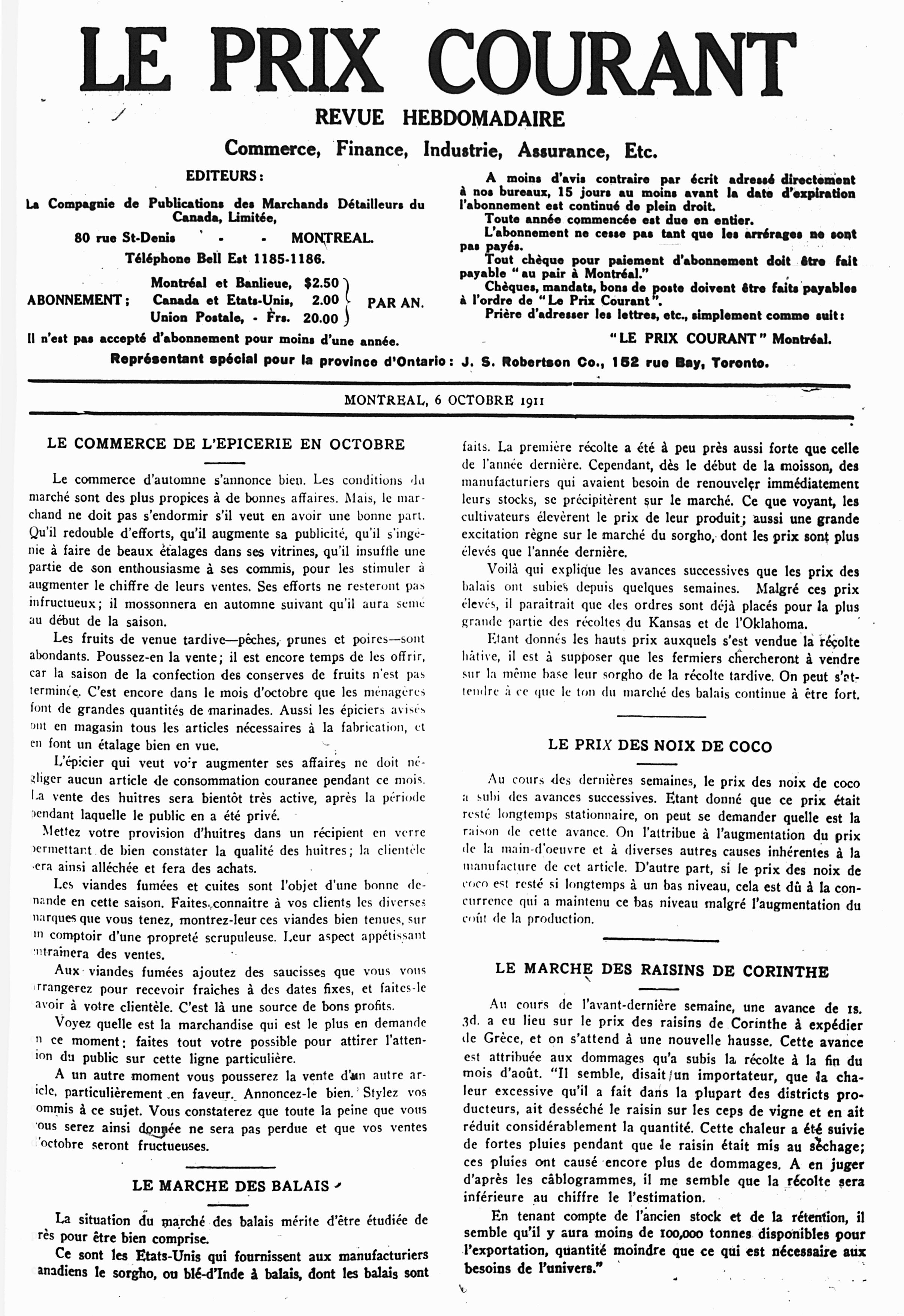 Le prix courant : Vol. 41 [i.e. 44], no 40 (6 oct. 1911)