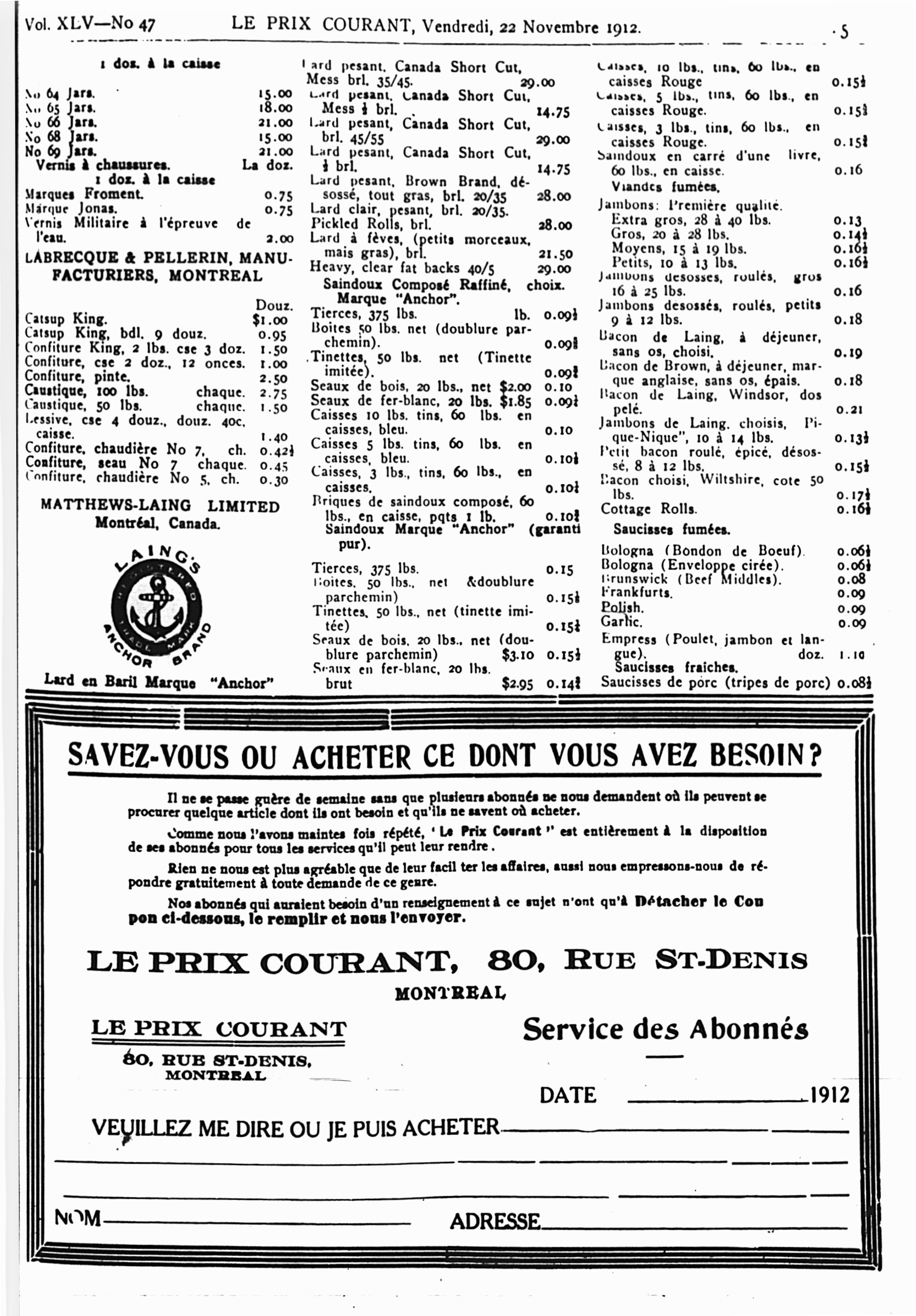 Le prix courant : Vol. 45, no 47 (22 nov. 1912)