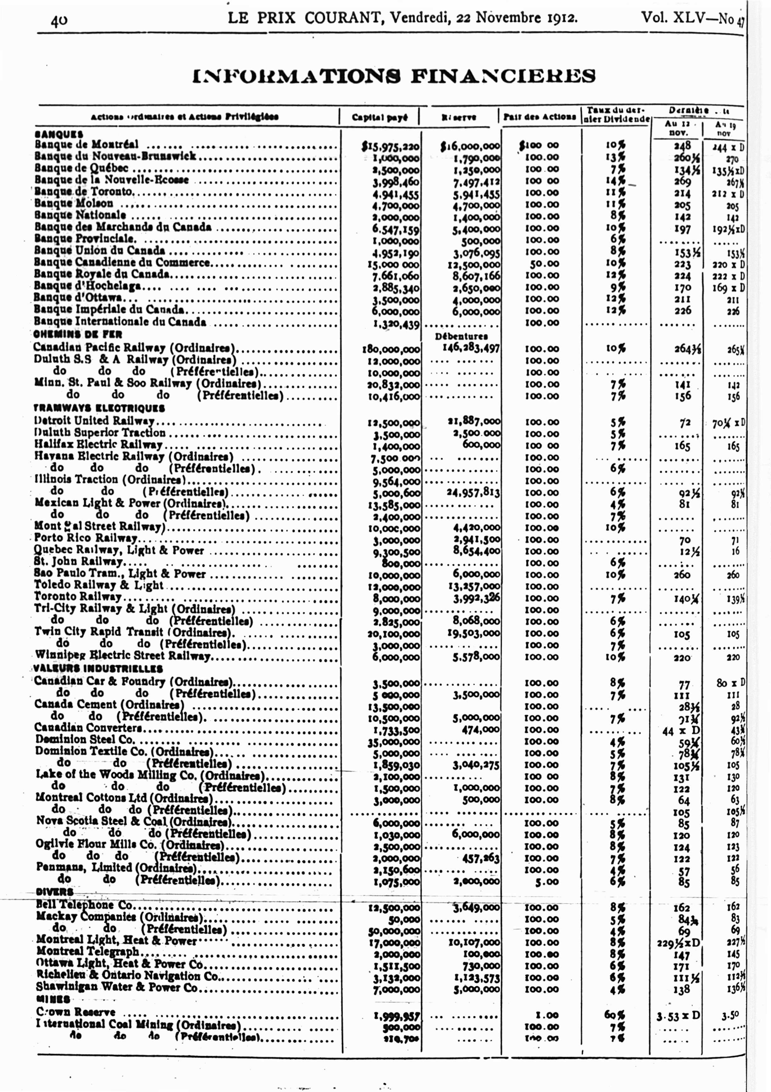 Le prix courant : Vol. 45, no 47 (22 nov. 1912)