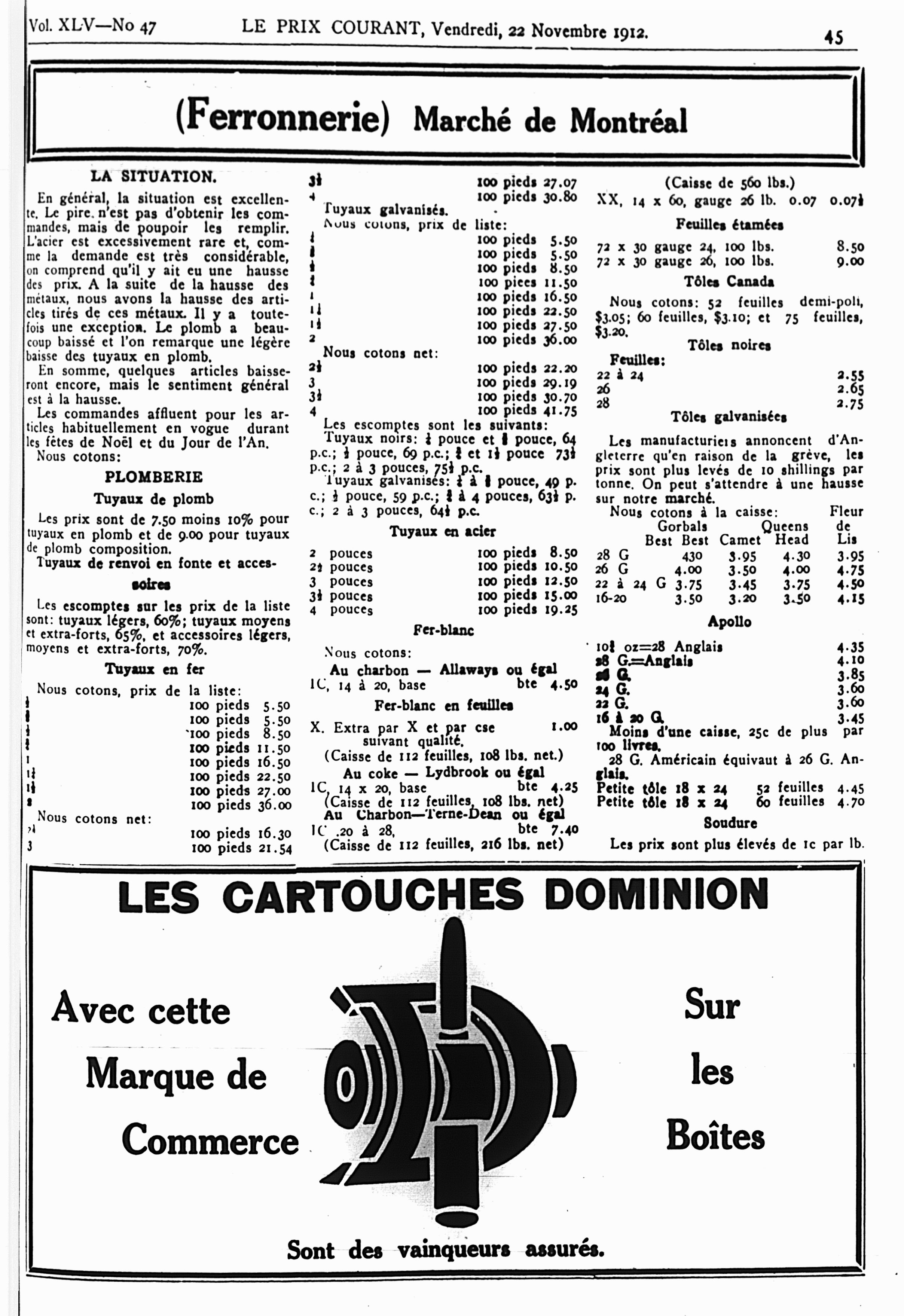 Le prix courant : Vol. 45, no 47 (22 nov. 1912)
