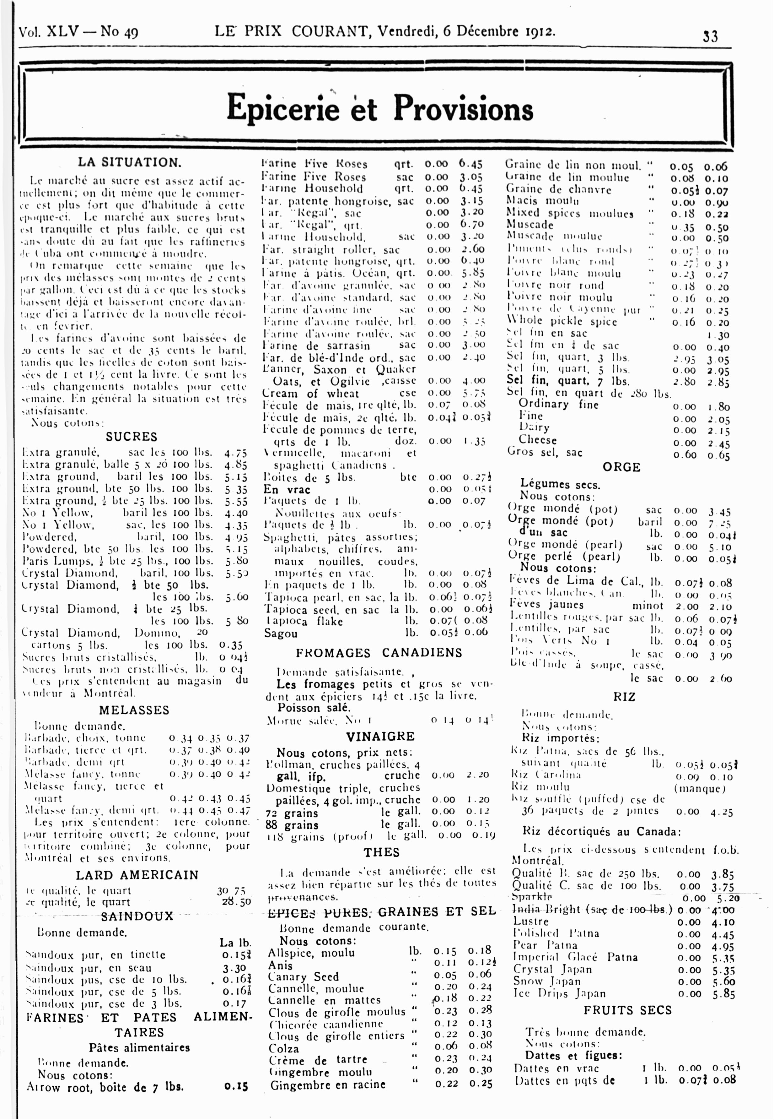 Le prix courant : Vol. 45, no 49 (6 déc. 1912)