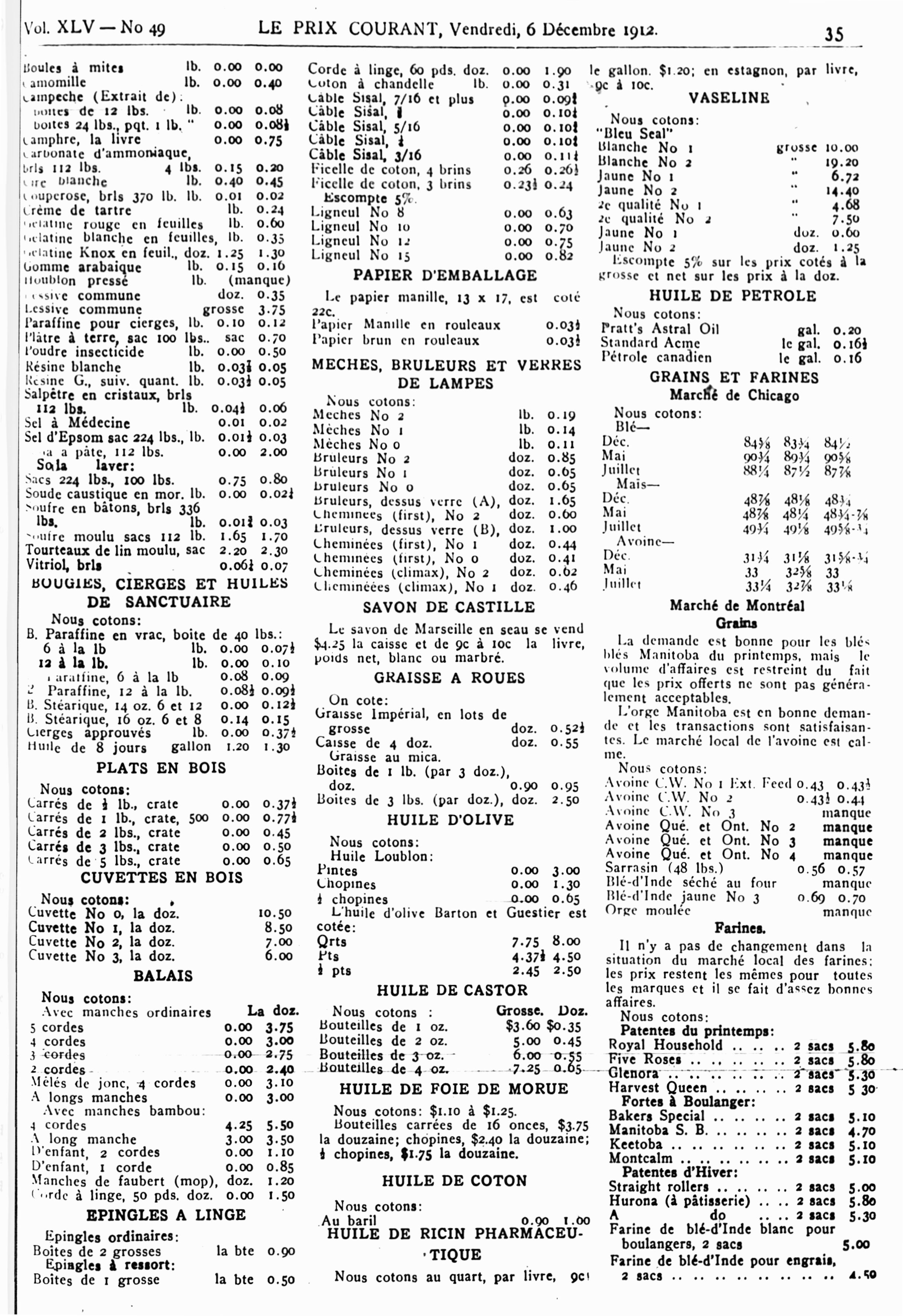 Le prix courant : Vol. 45, no 49 (6 déc. 1912)