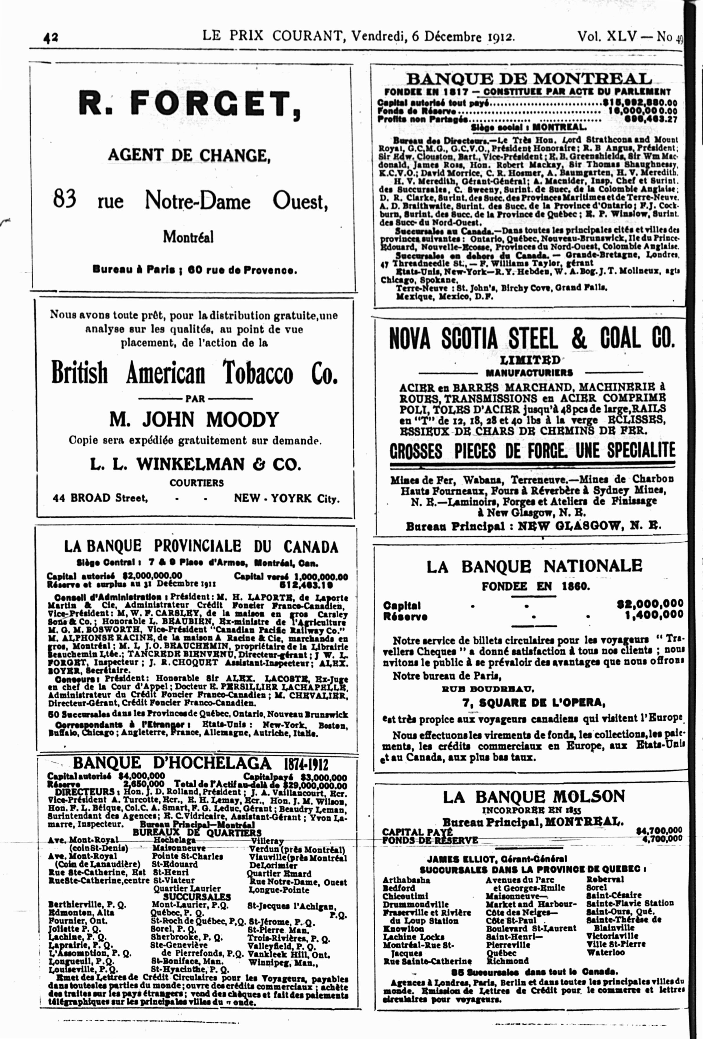 Le prix courant : Vol. 45, no 49 (6 déc. 1912)