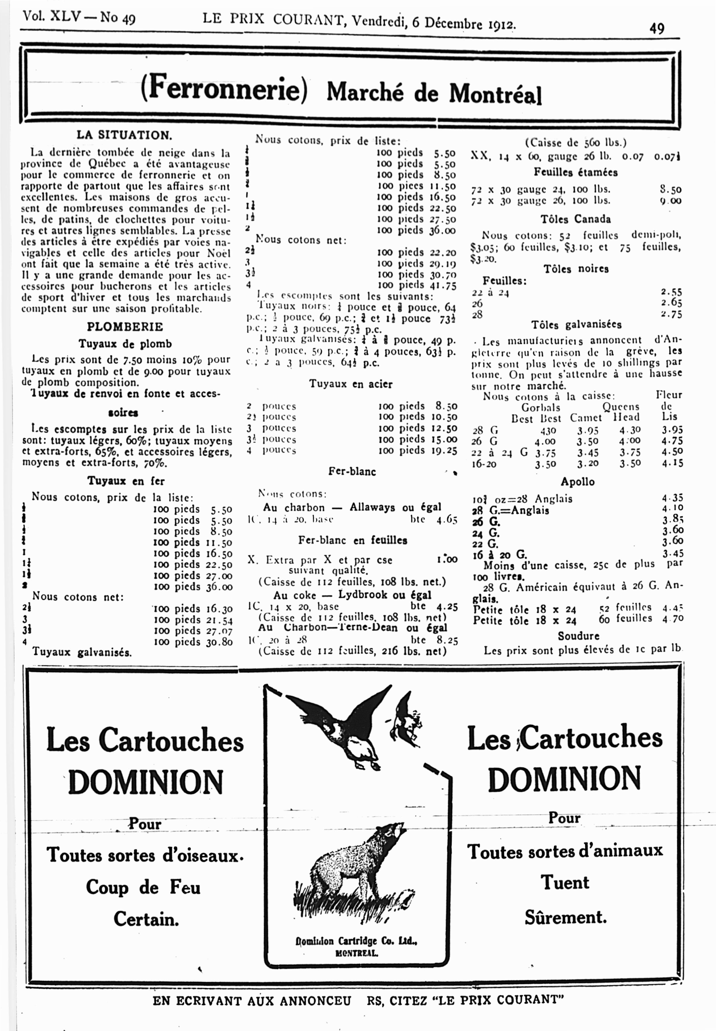 Le prix courant : Vol. 45, no 49 (6 déc. 1912)