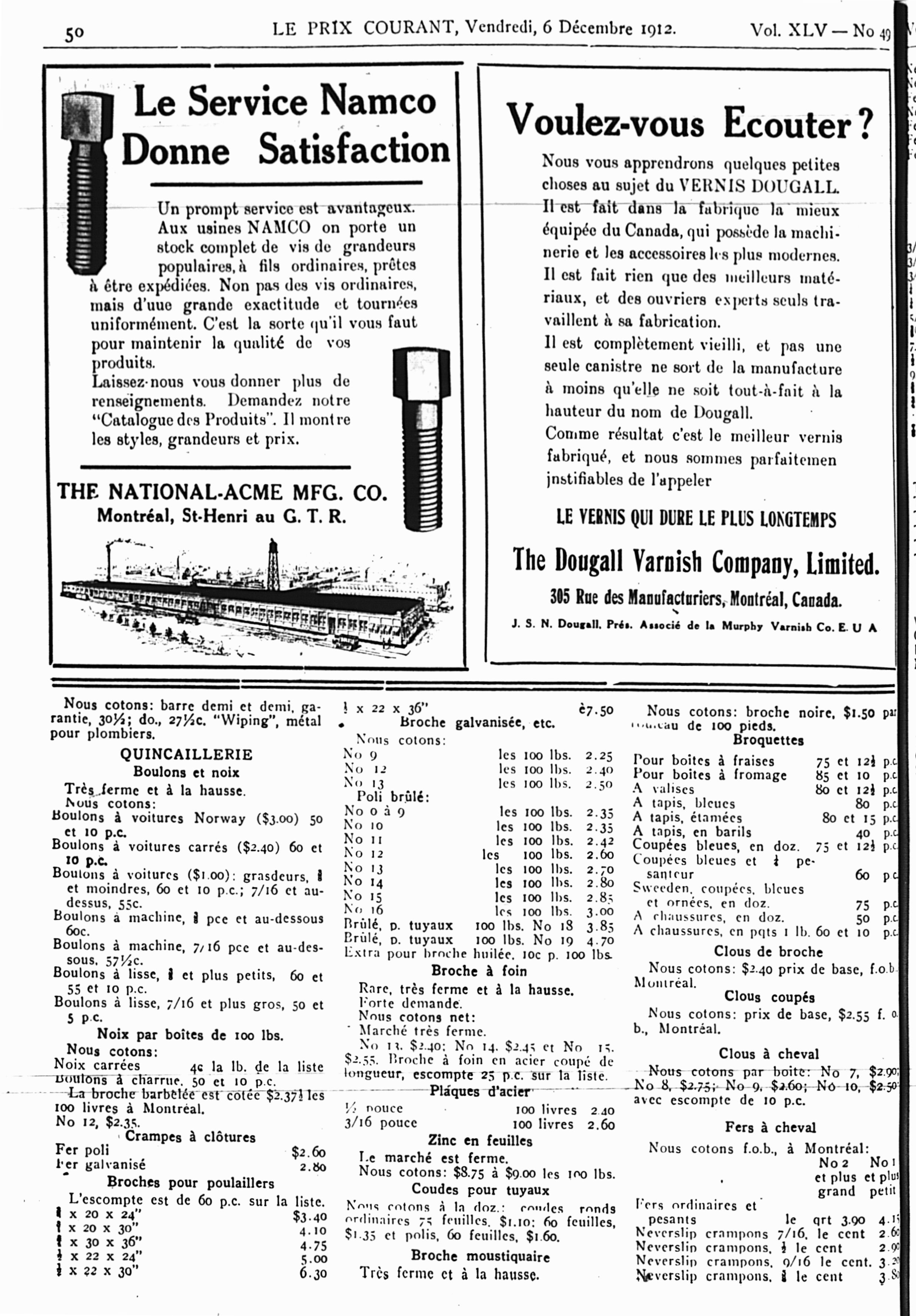 Le prix courant : Vol. 45, no 49 (6 déc. 1912)