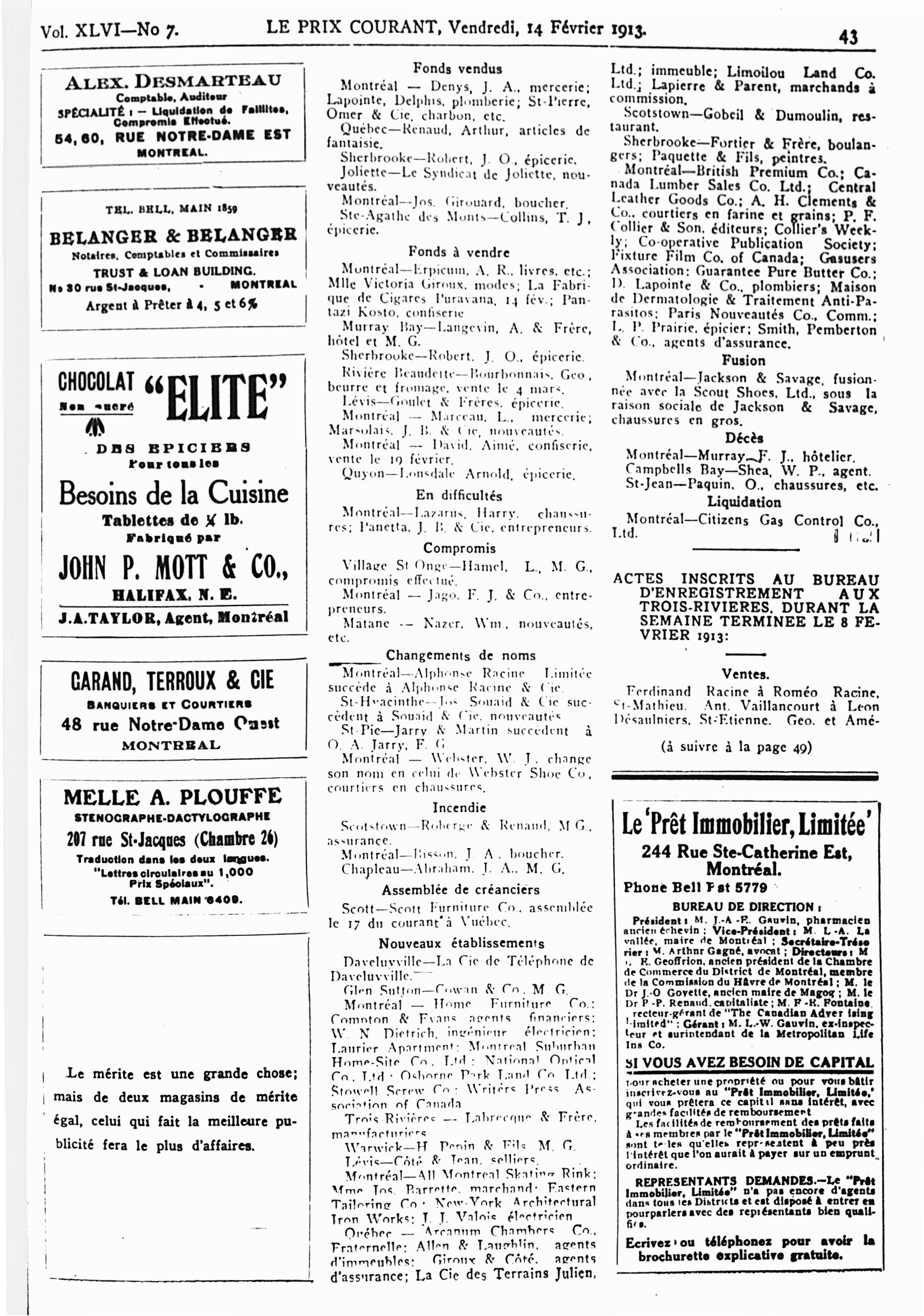Le prix courant : Vol. 46, no 7 (14 févr. 1913)