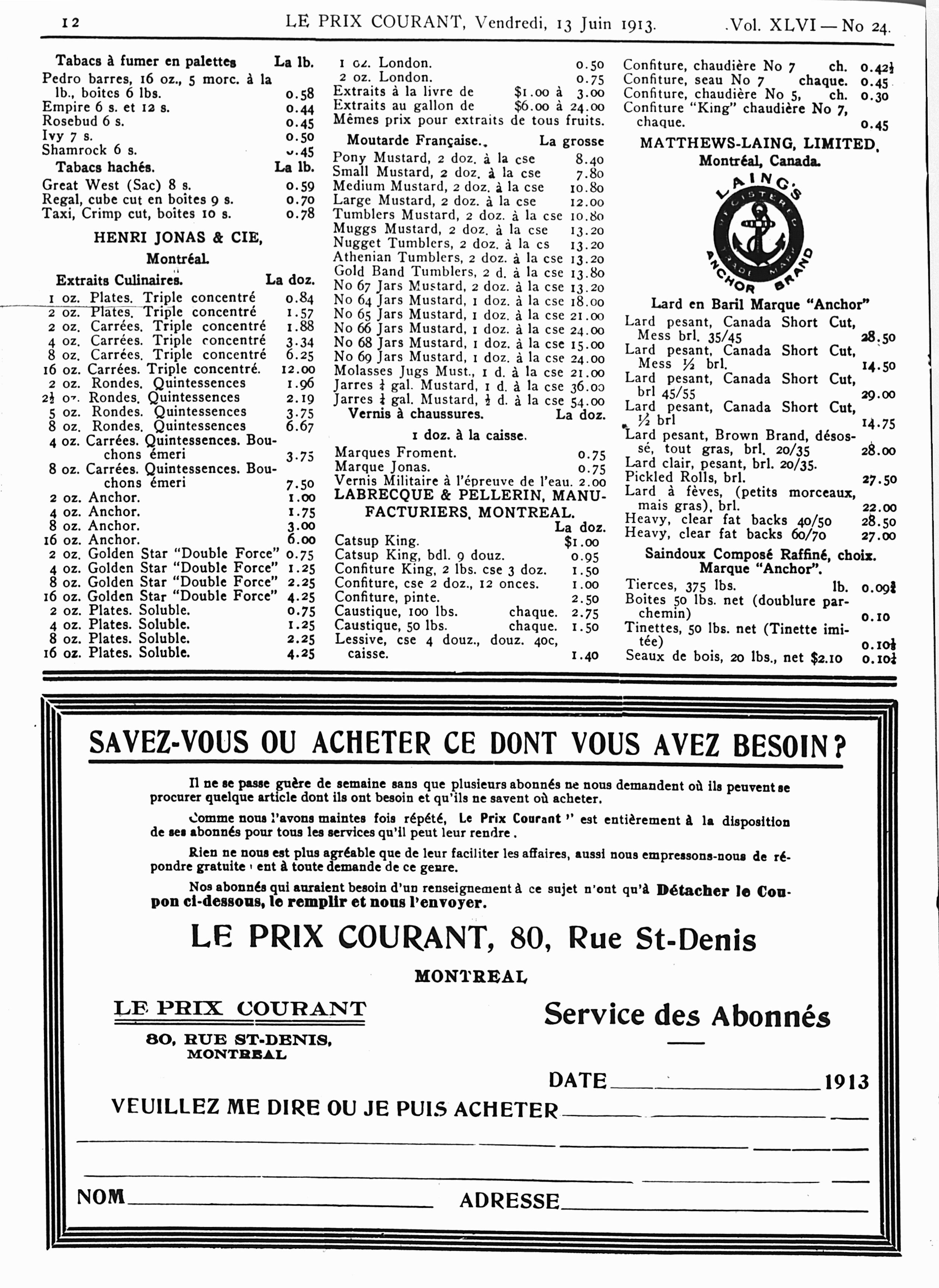 Le prix courant : Vol. 46, no 24 (13 juin 1913)