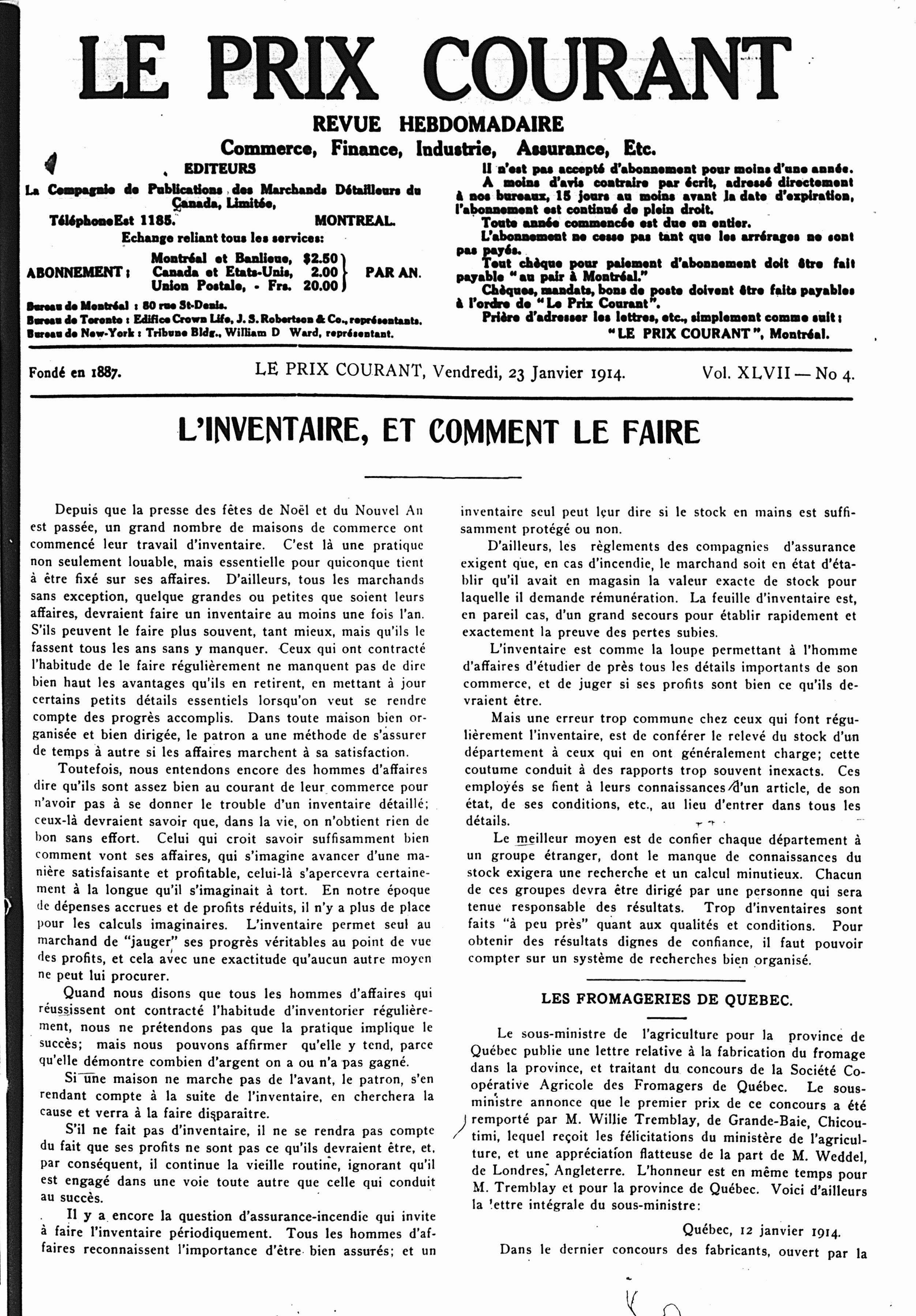 Le prix courant : Vol. 47, no 4 (23 janv. 1914)
