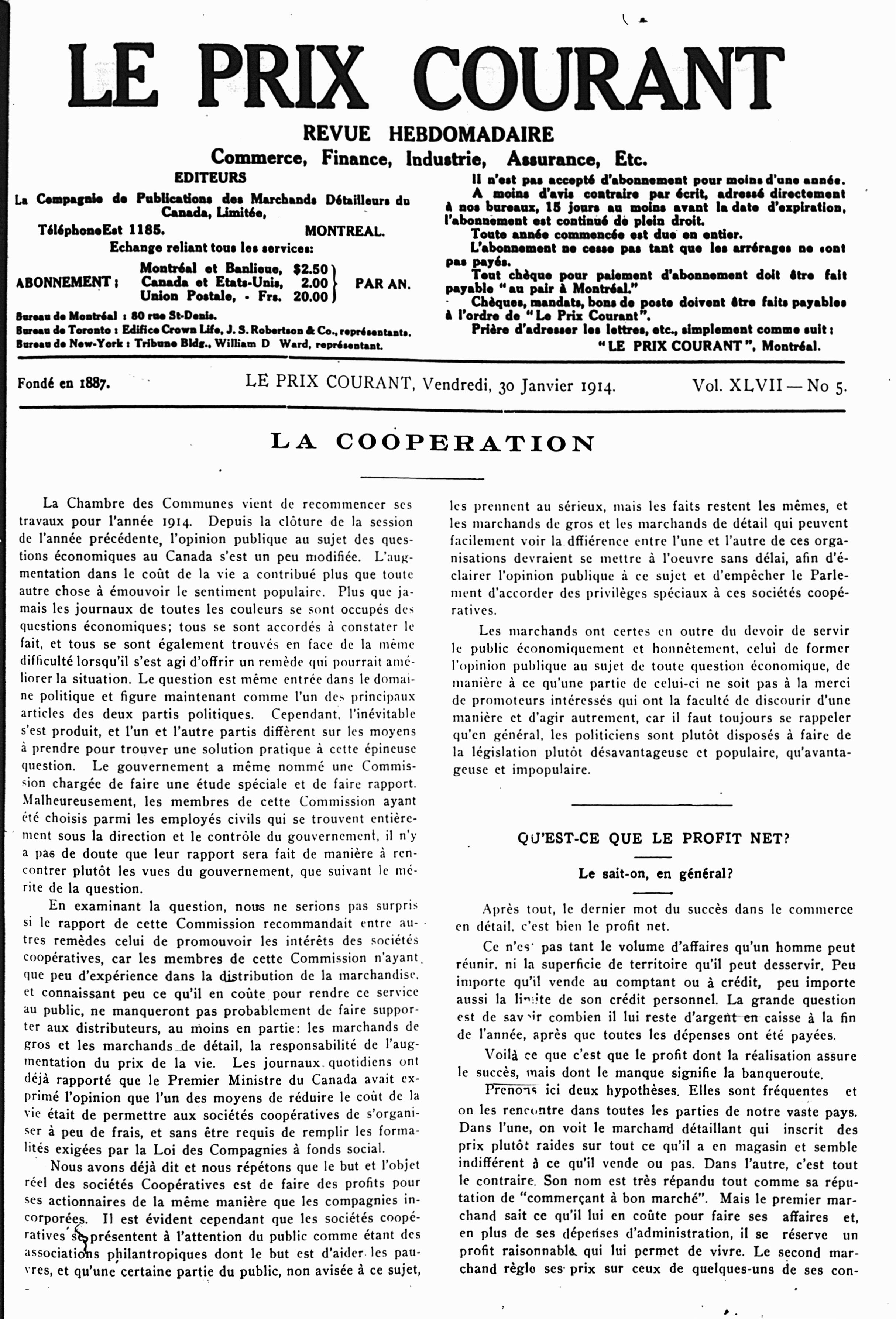 Le prix courant : Vol. 47, no 5 (30 janv. 1914)