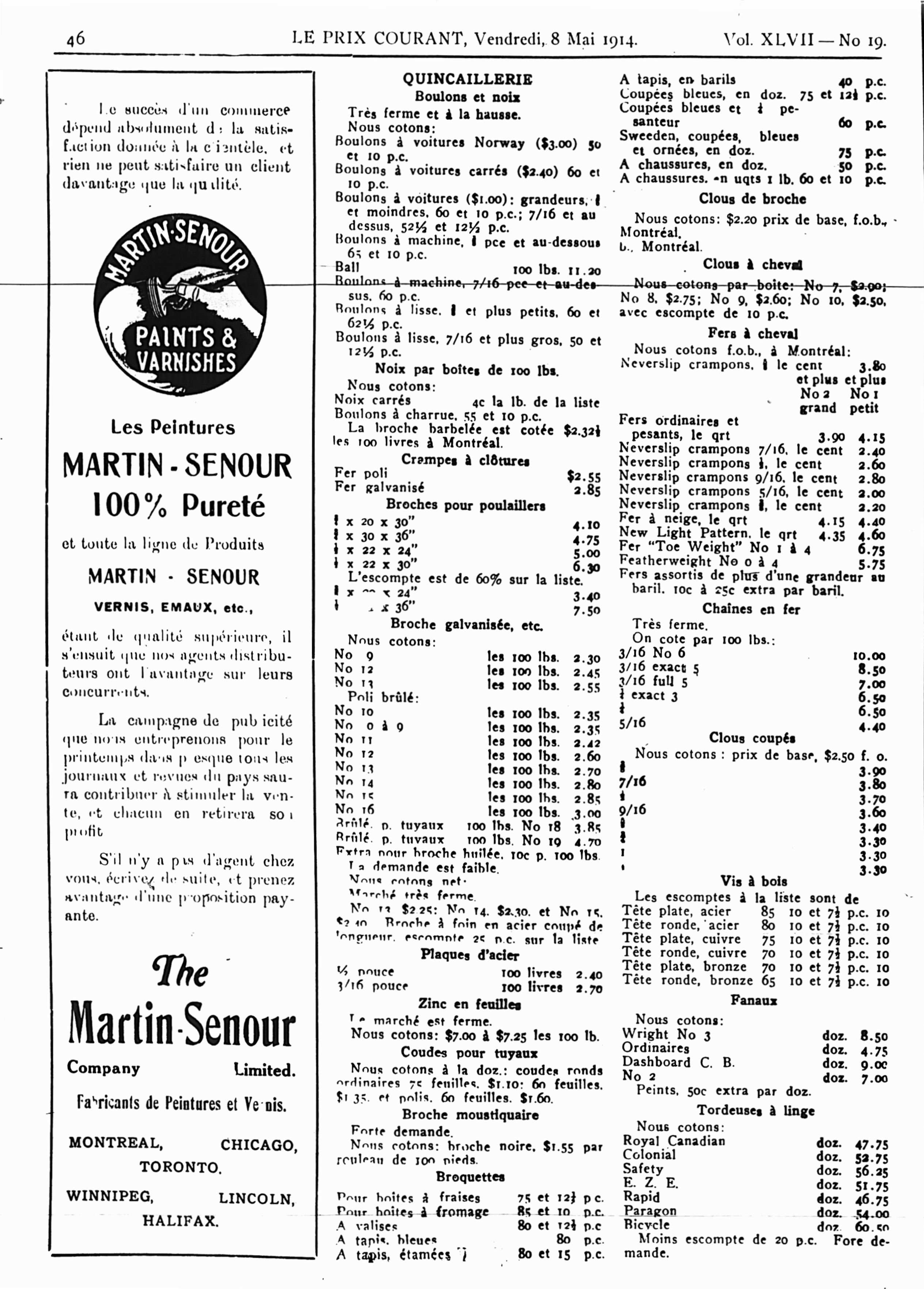 Le prix courant : Vol. 47, no 19 (8 mai 1914)