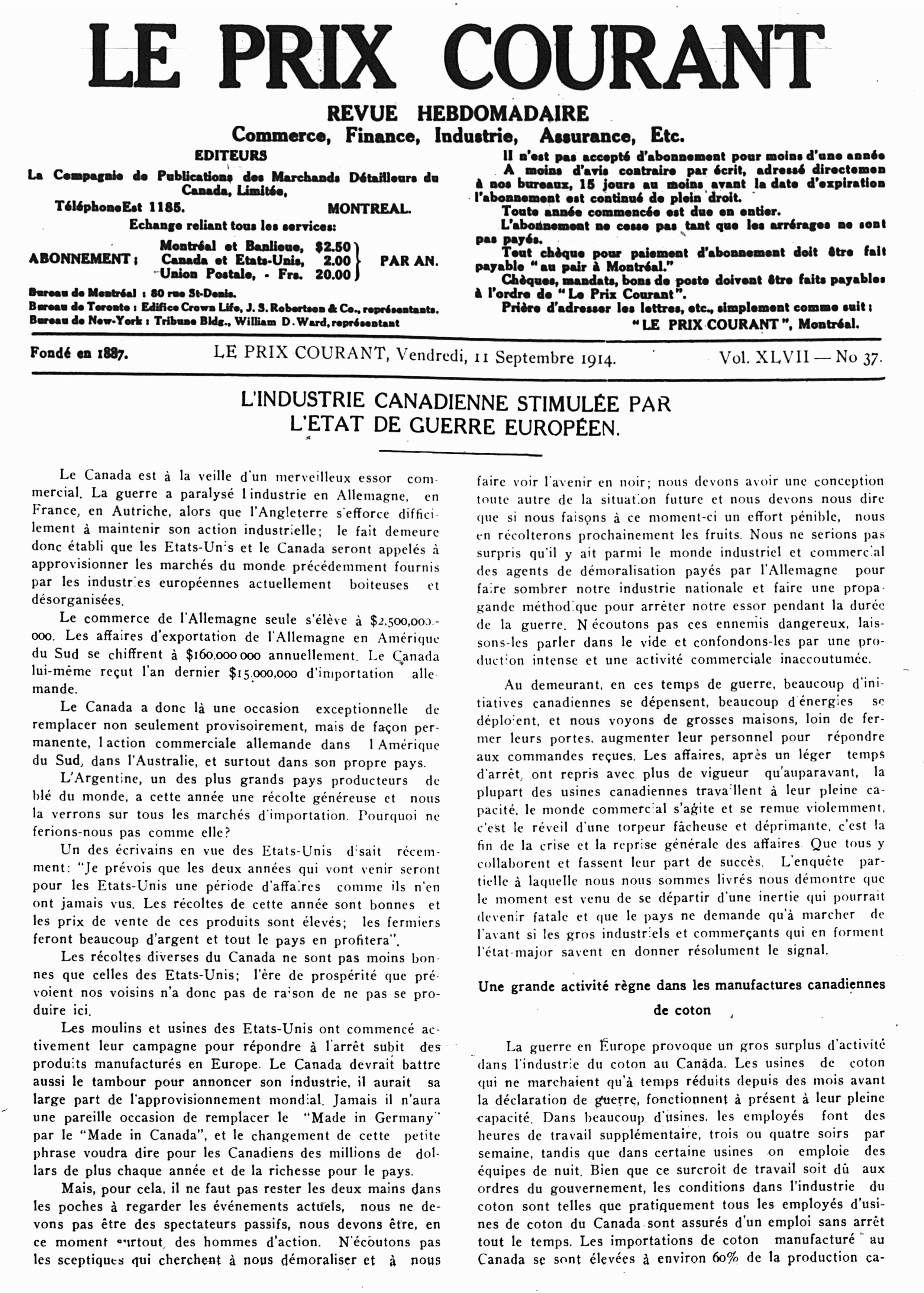 Le prix courant : Vol. 47, no 37 (11 sept. 1914)