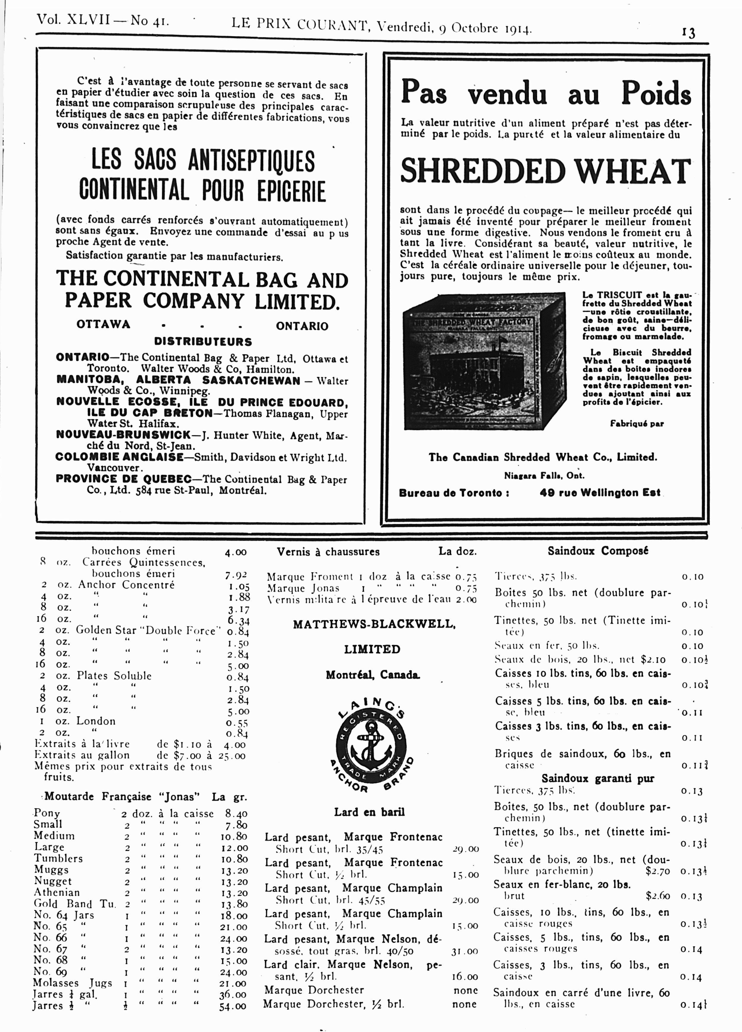 Le prix courant : Vol. 47, no 41 (9 oct. 1914)