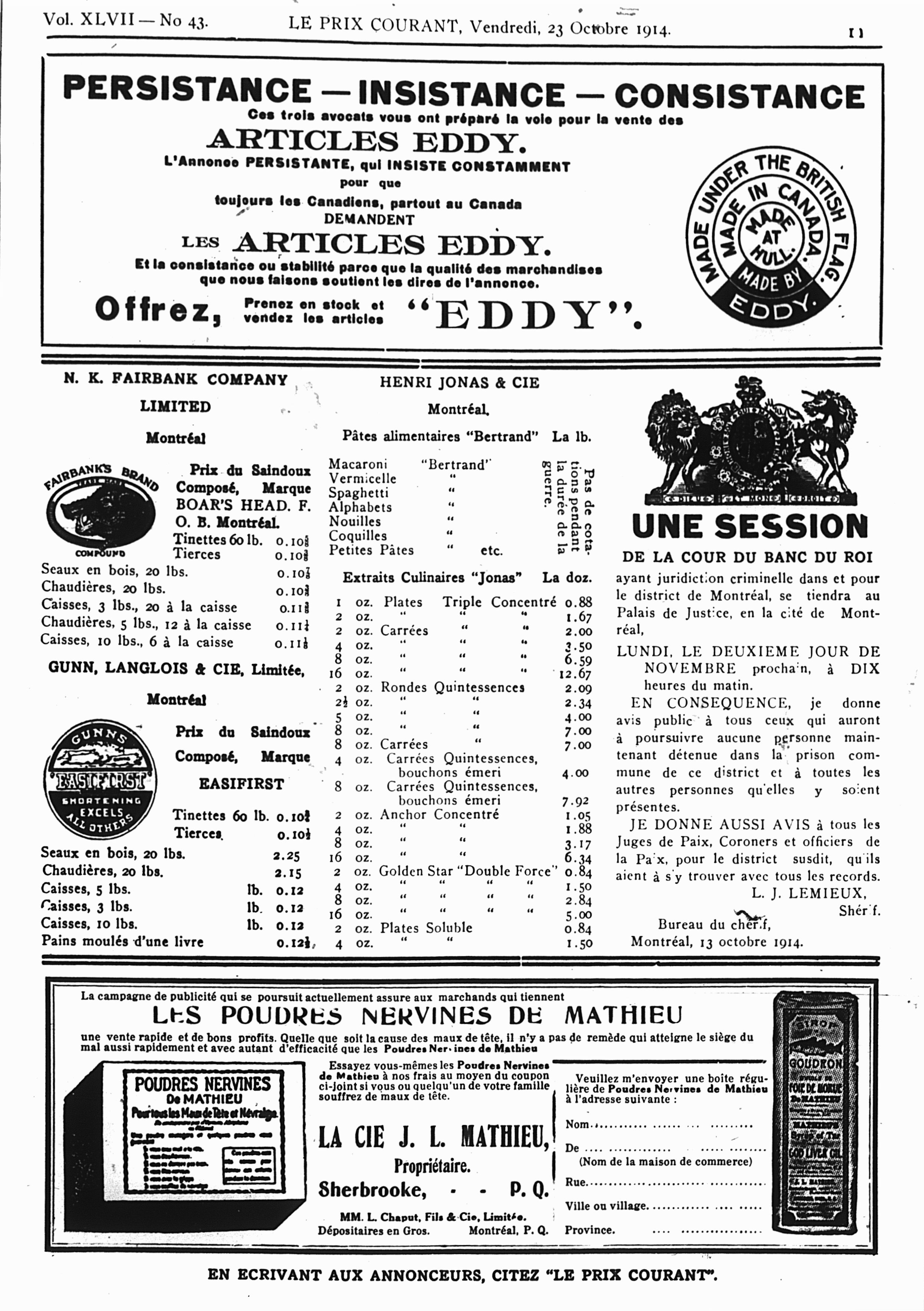 Le prix courant : Vol. 47, no 43 (23 oct. 1914)