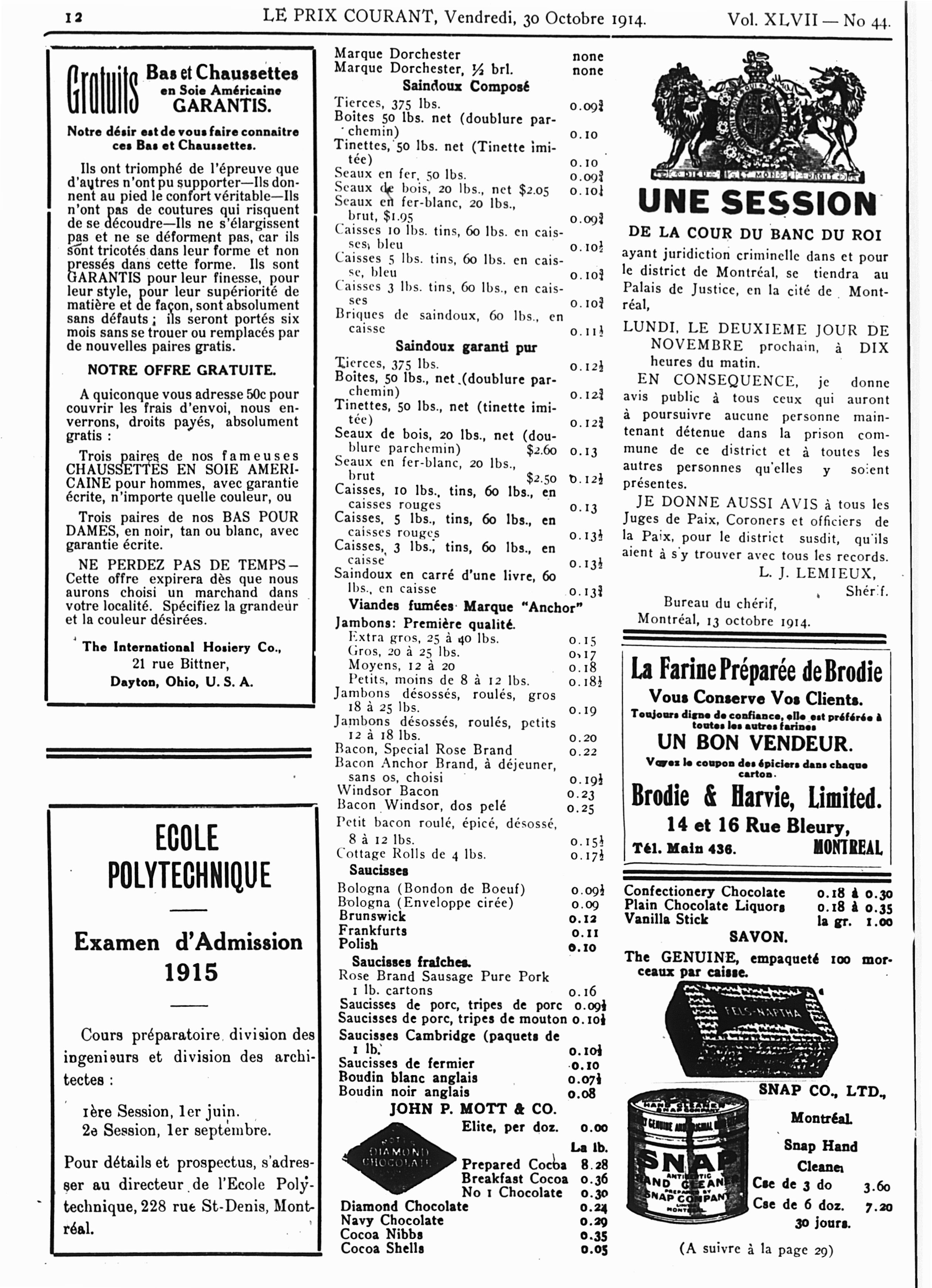 Le prix courant : Vol. 47, no 44 (30 oct. 1914)