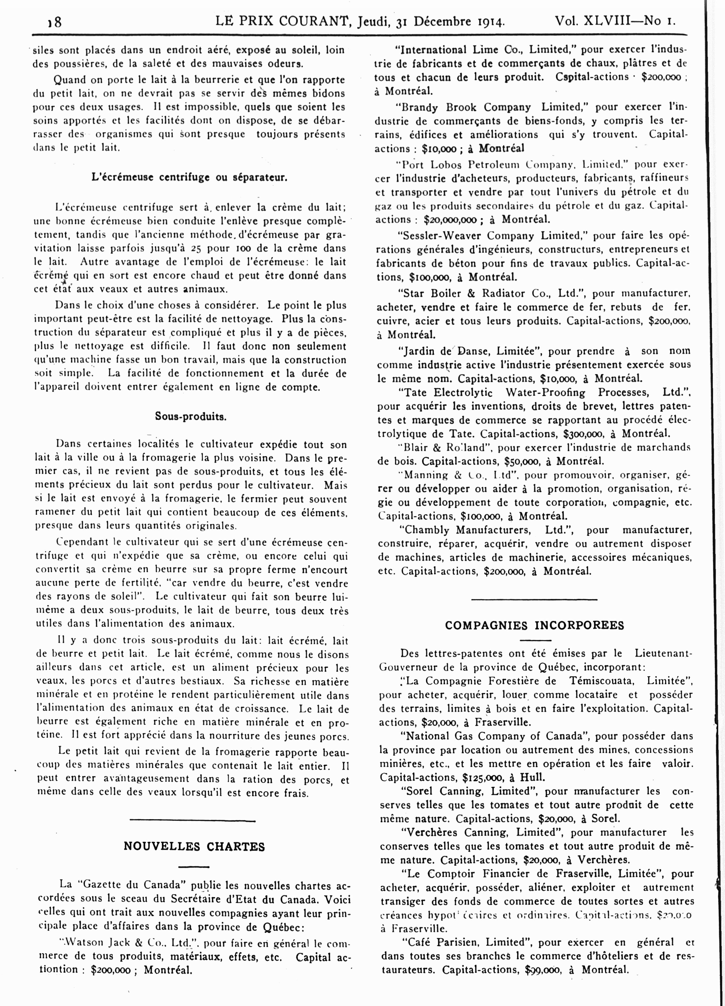 Le prix courant : Vol. 48, no 1 (31 déc. 1914)