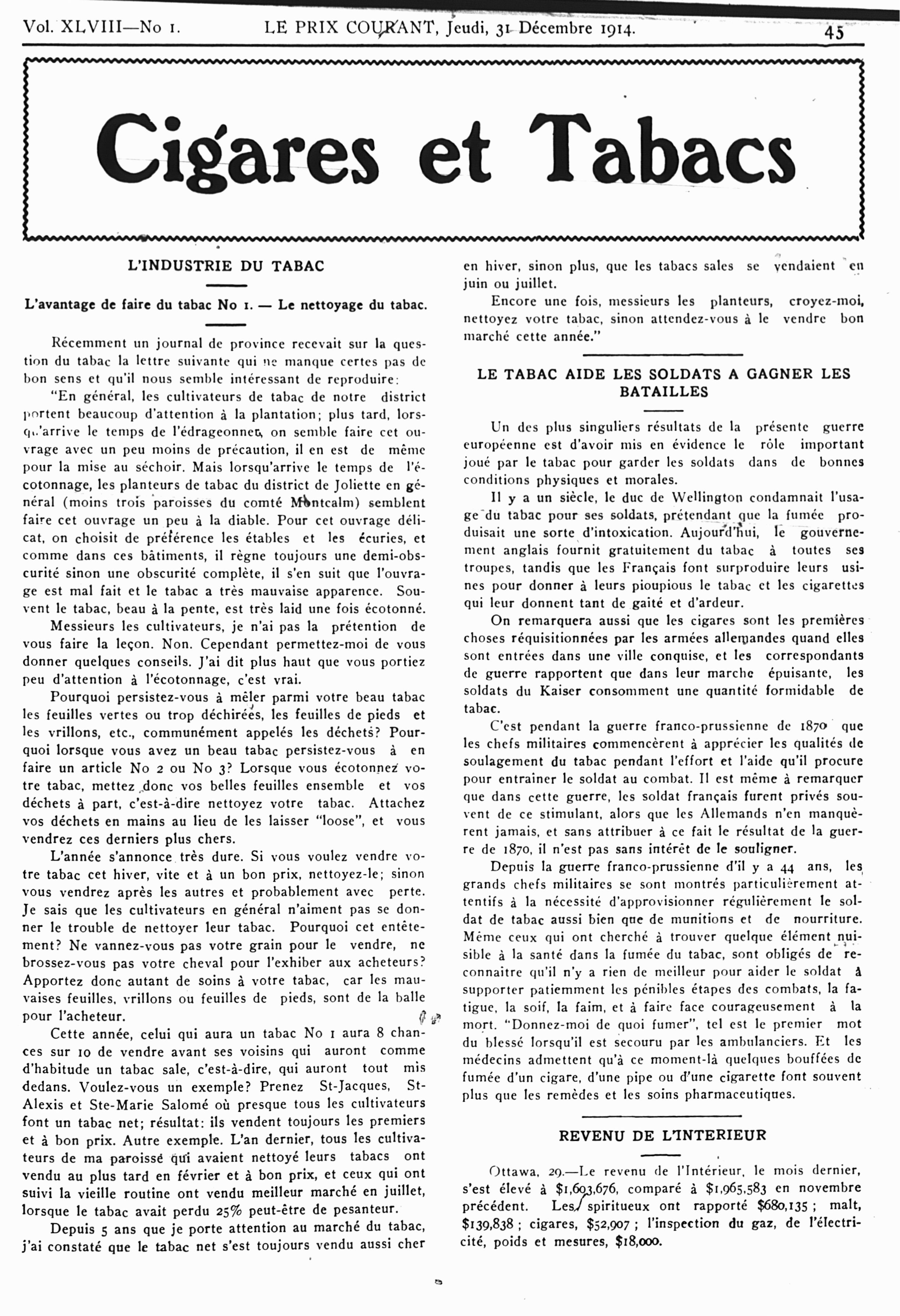 Le prix courant : Vol. 48, no 1 (31 déc. 1914)