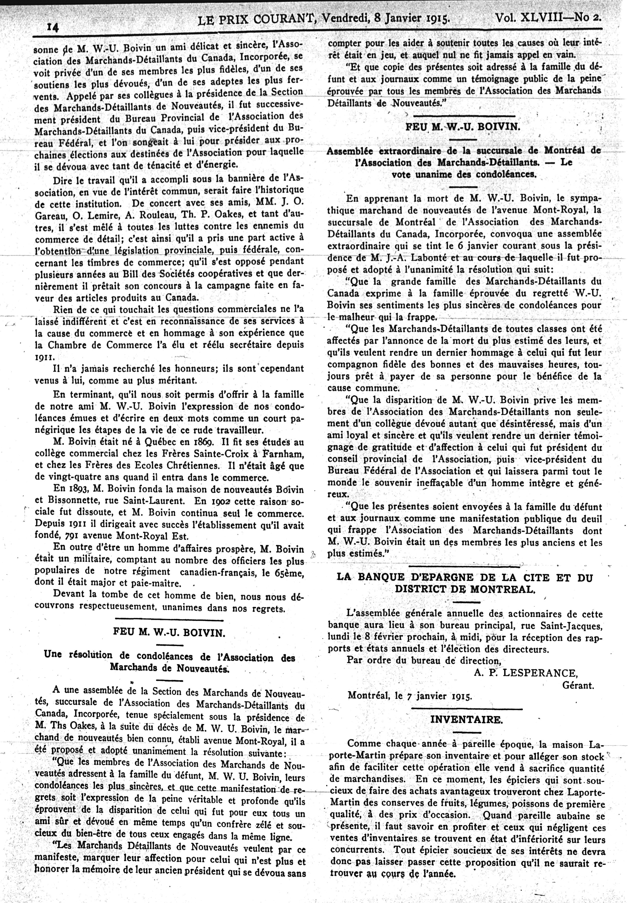 Le prix courant : Vol. 48, no 2 (8 janv. 1915)