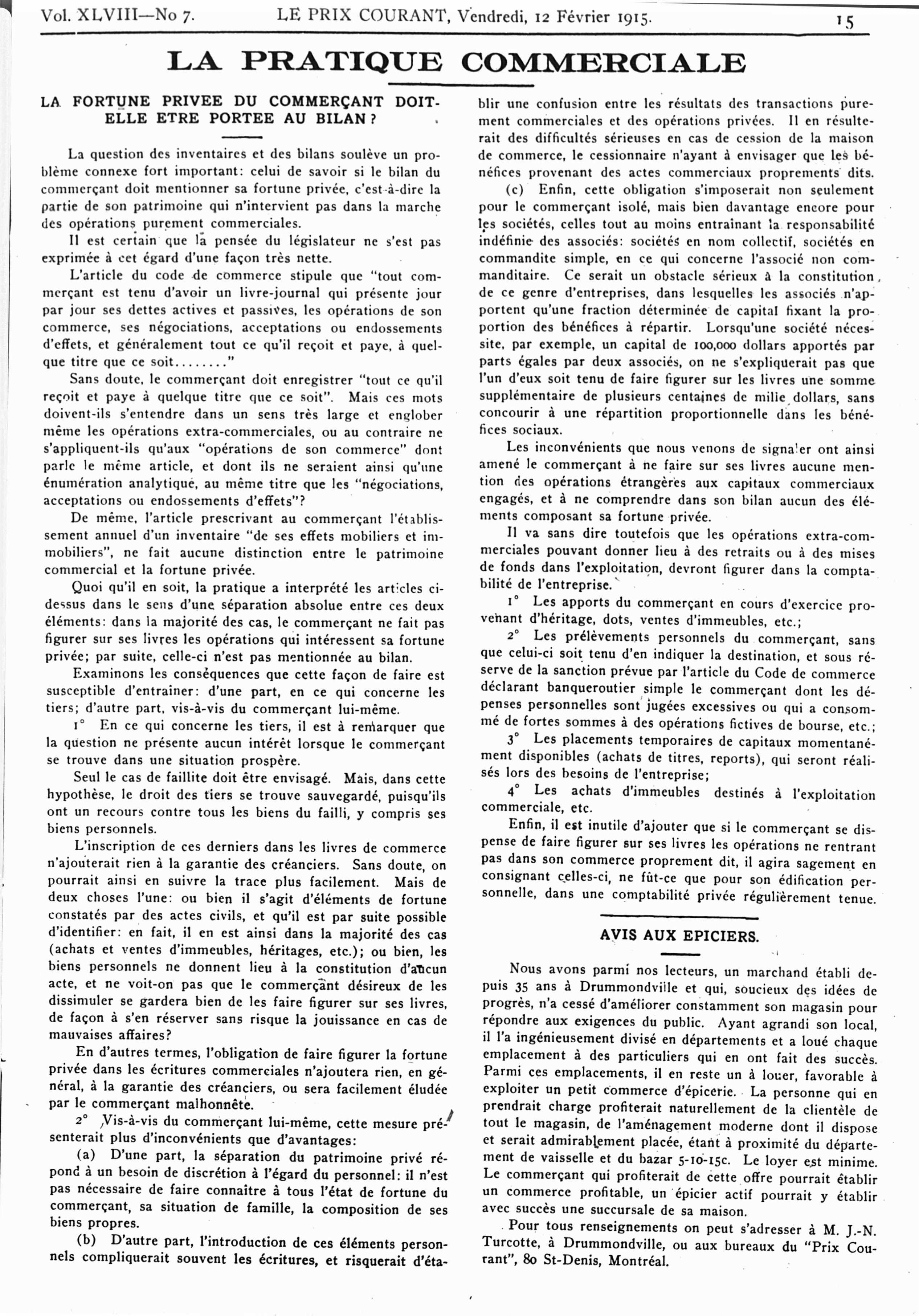 Le prix courant : Vol. 48, no 7 (12 févr. 1915)