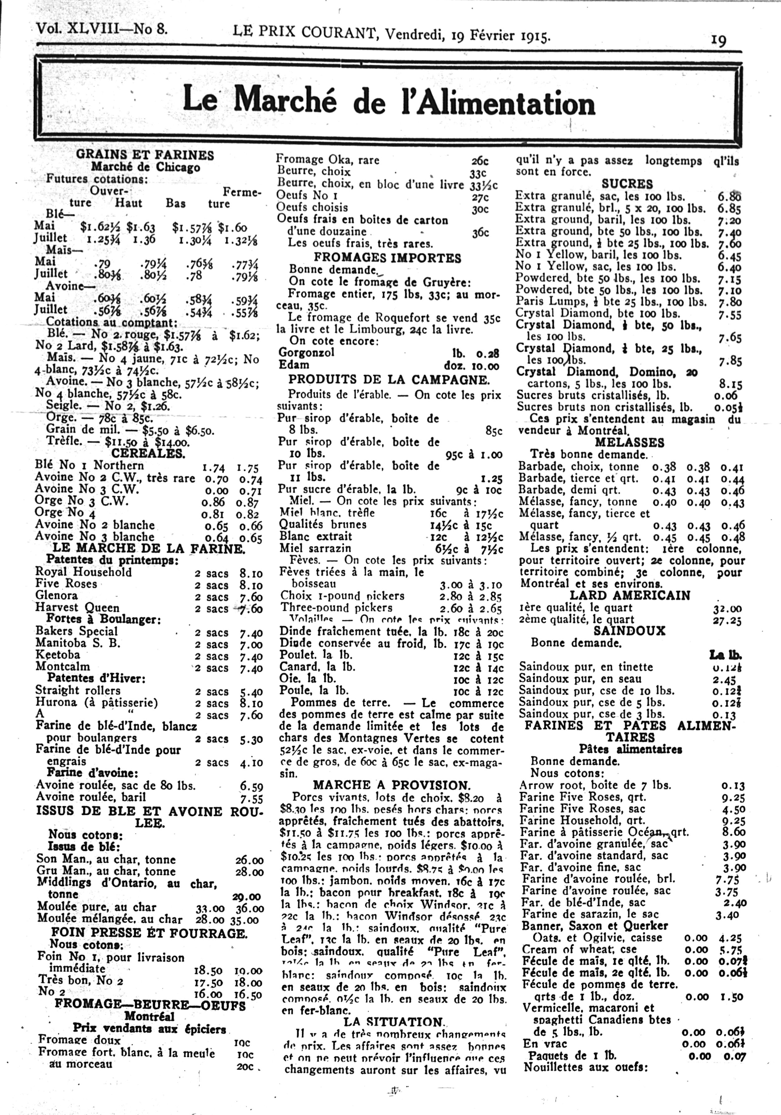 Le prix courant : Vol. 48, no 8 (19 févr. 1915)