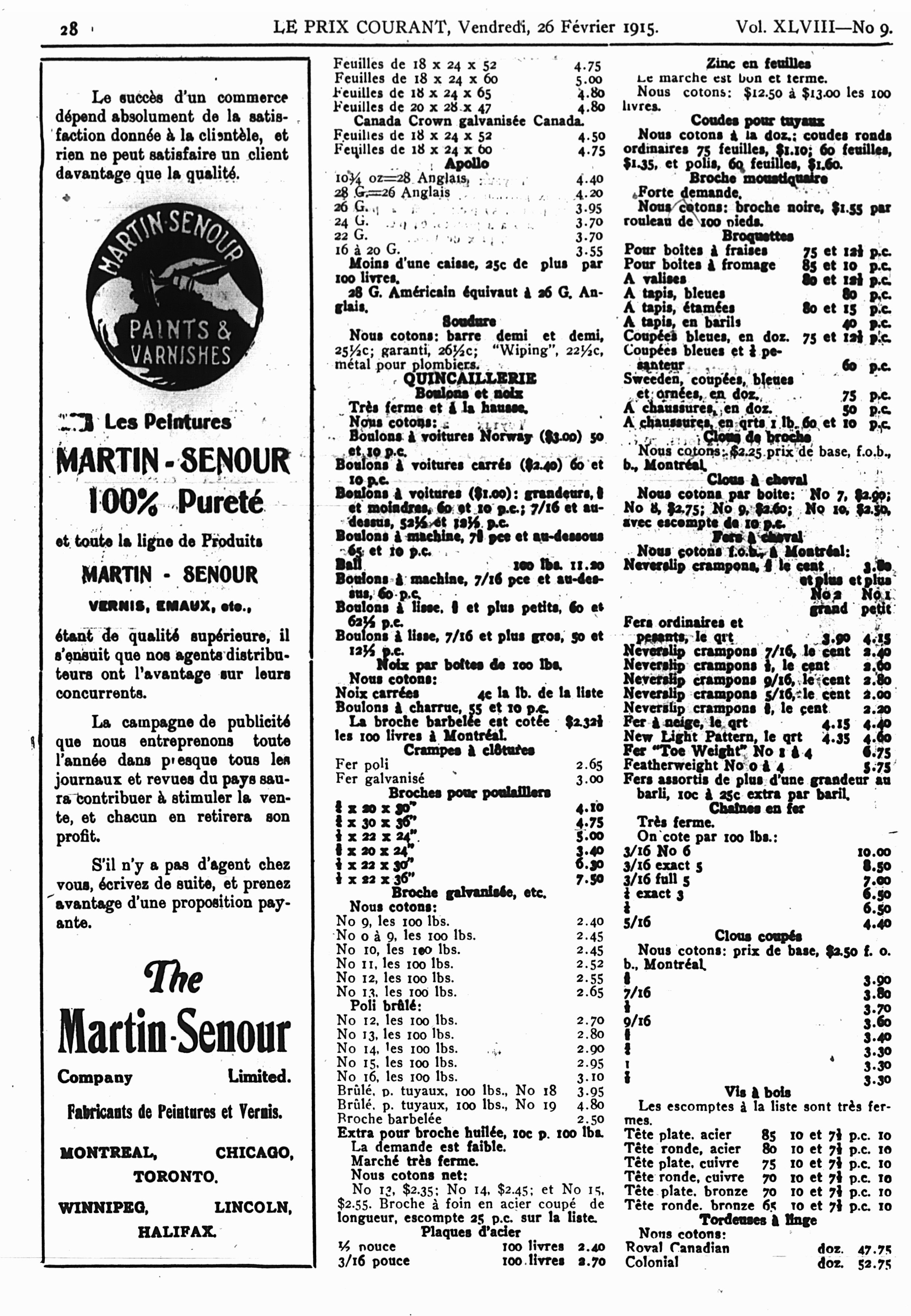Le prix courant : Vol. 48, no 9 (26 févr. 1915)