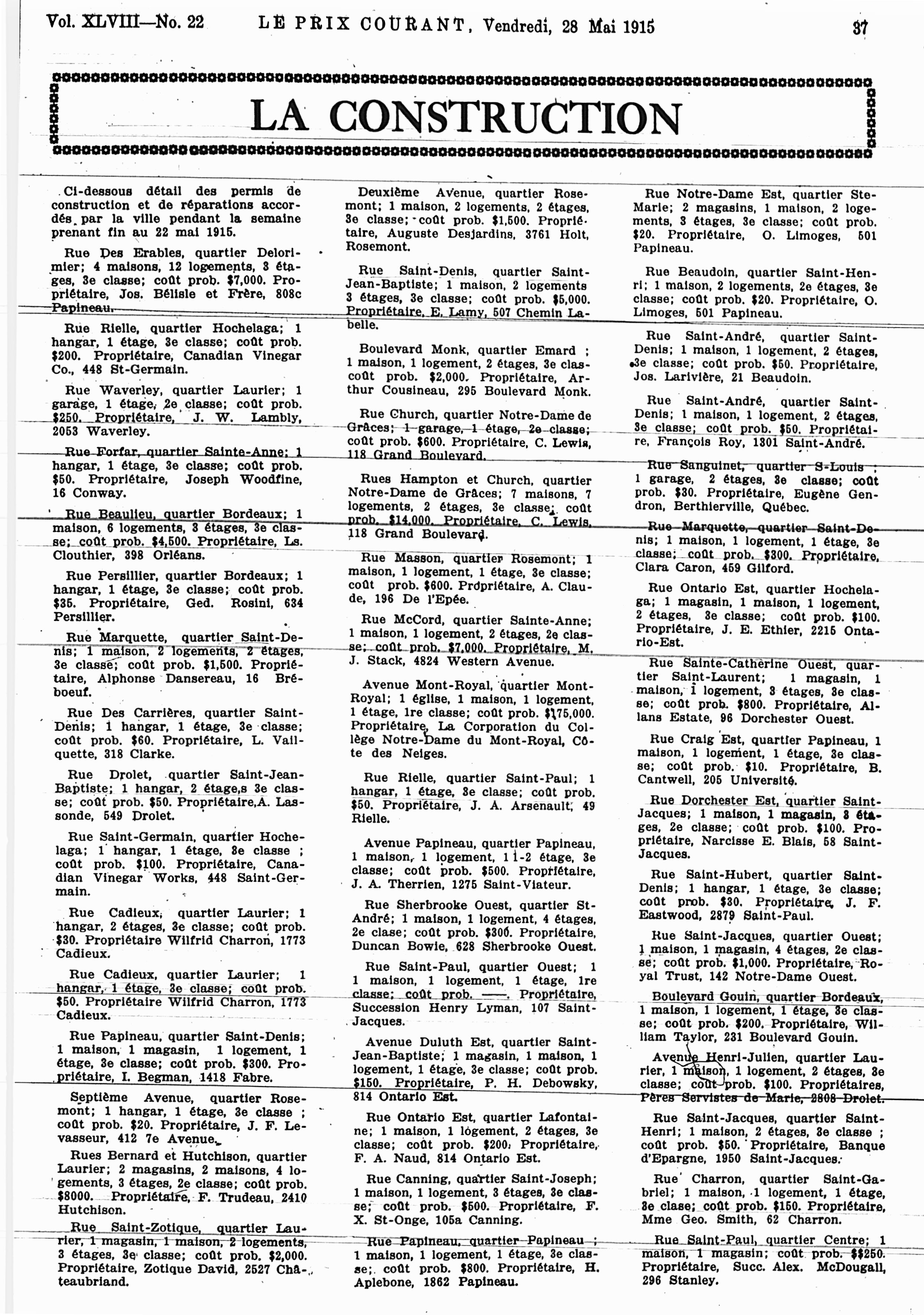 Le prix courant : Vol. 48, no 22 (28 mai 1915)