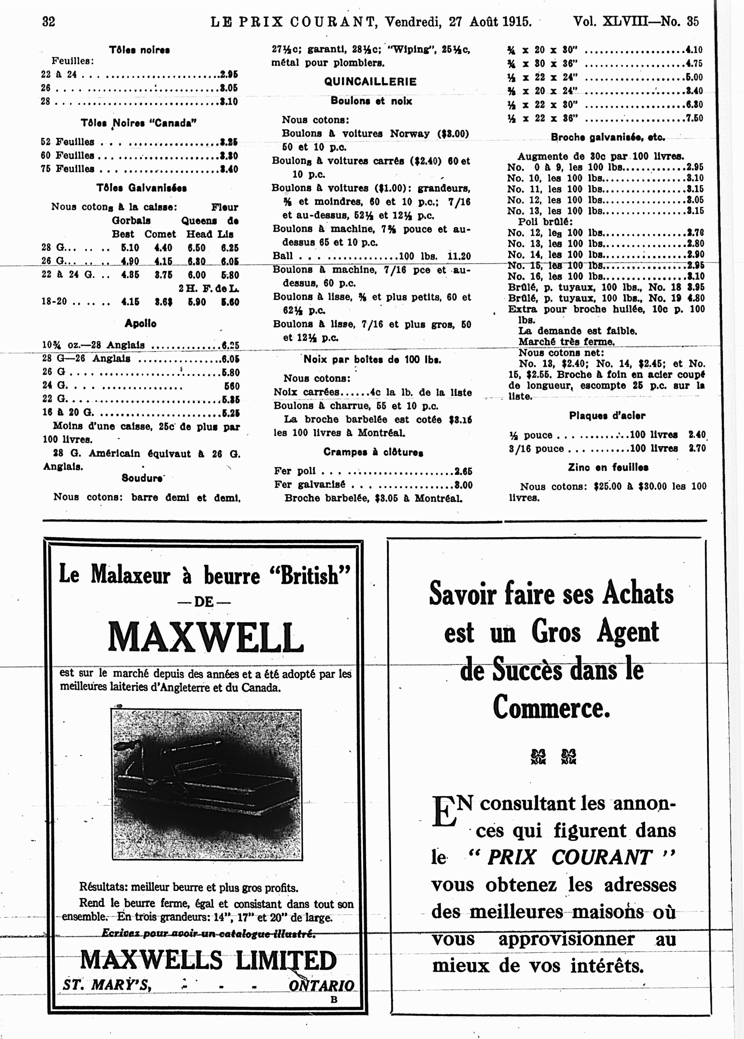 Le prix courant : Vol. 48, no 35 (27 août 1915)