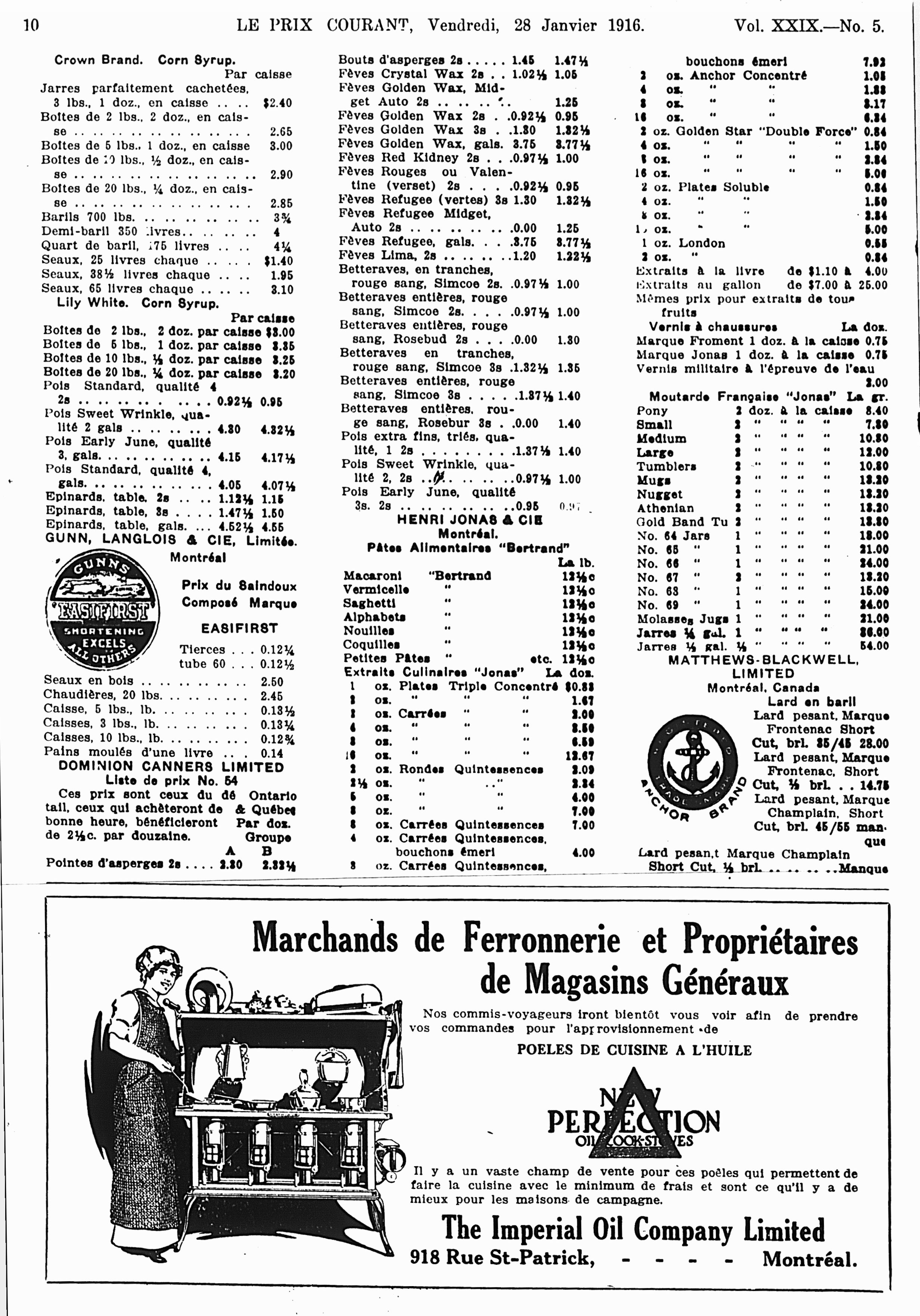 Le prix courant : Vol. 29, no 5 (28 janv. 1916)