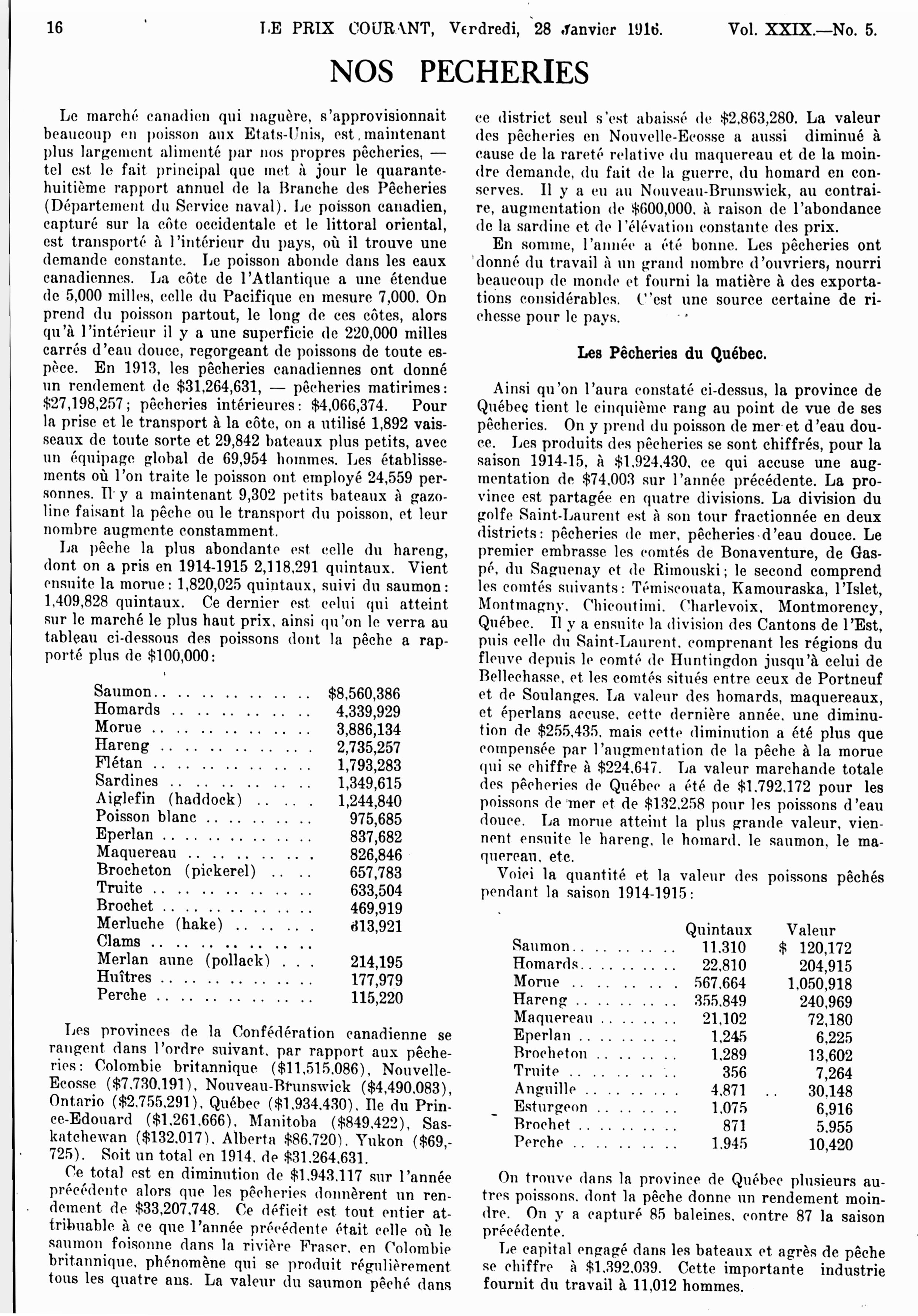 Le prix courant : Vol. 29, no 5 (28 janv. 1916)