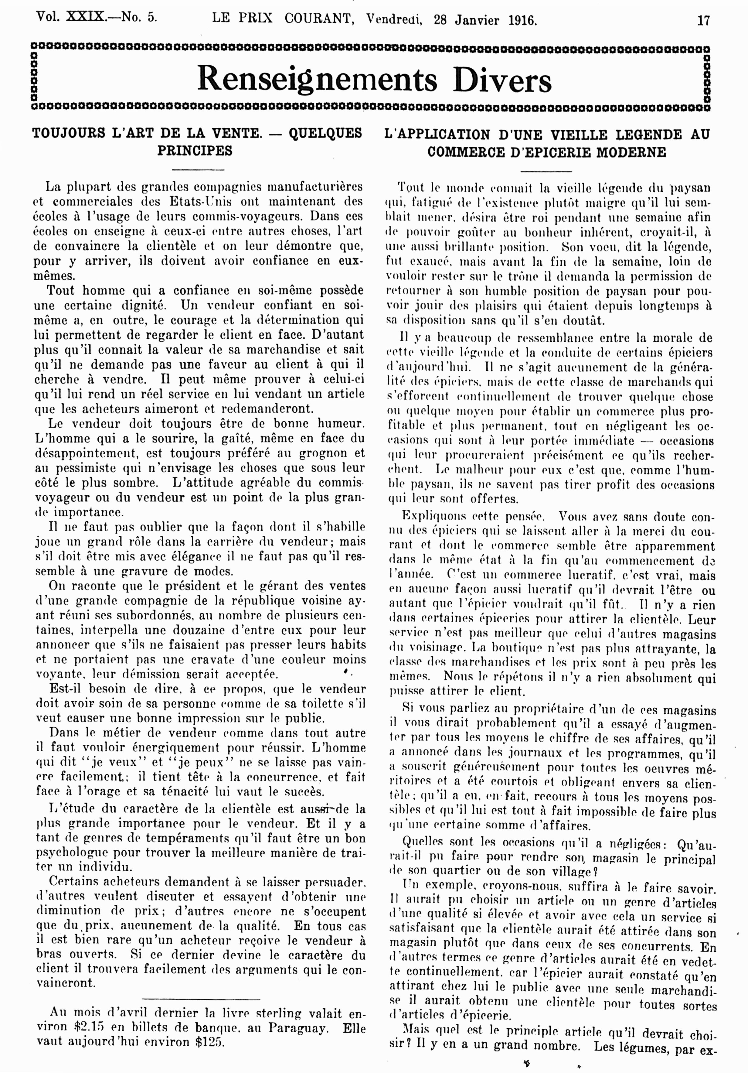 Le prix courant : Vol. 29, no 5 (28 janv. 1916)