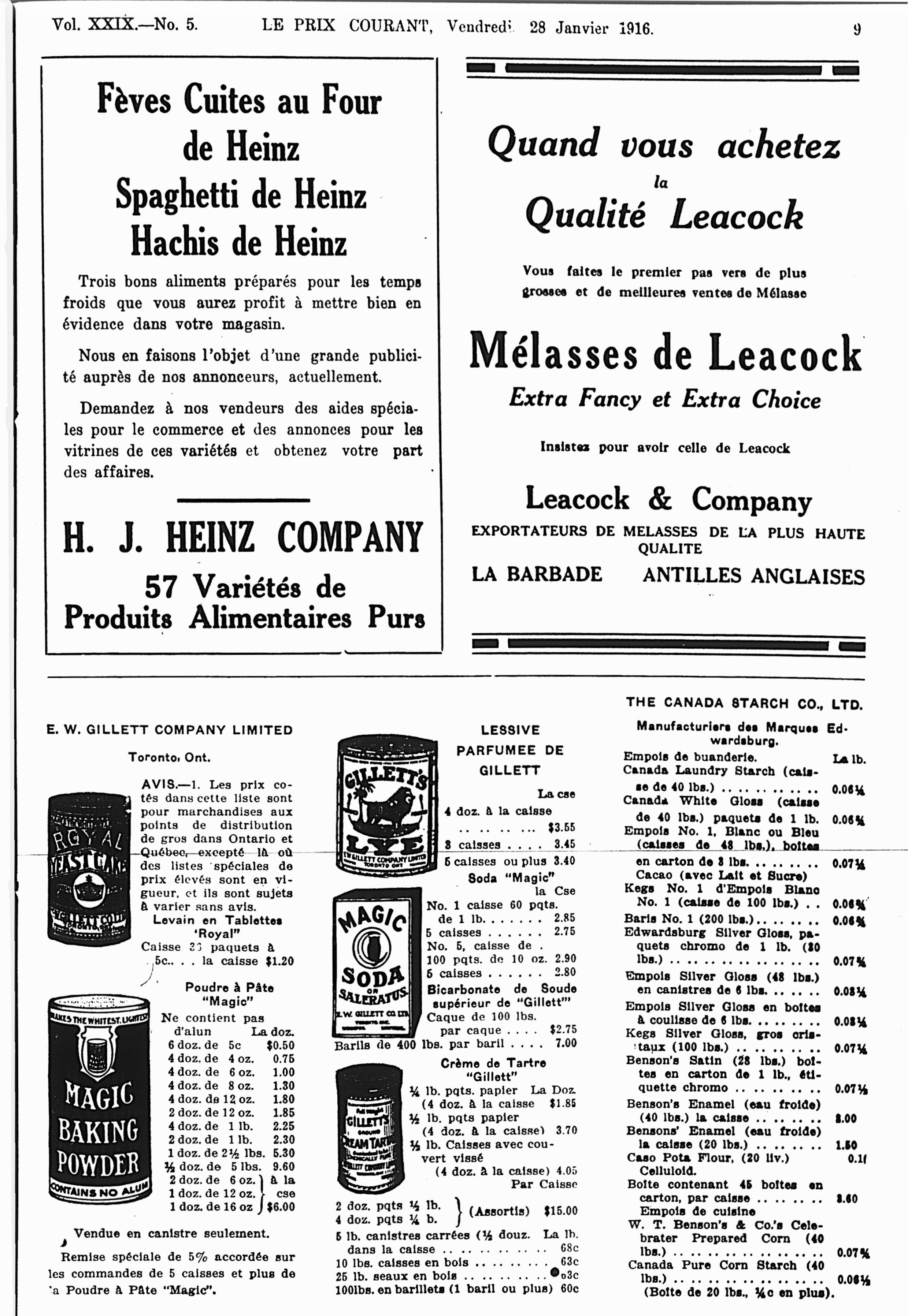 Le prix courant : Vol. 29, no 5 (28 janv. 1916)