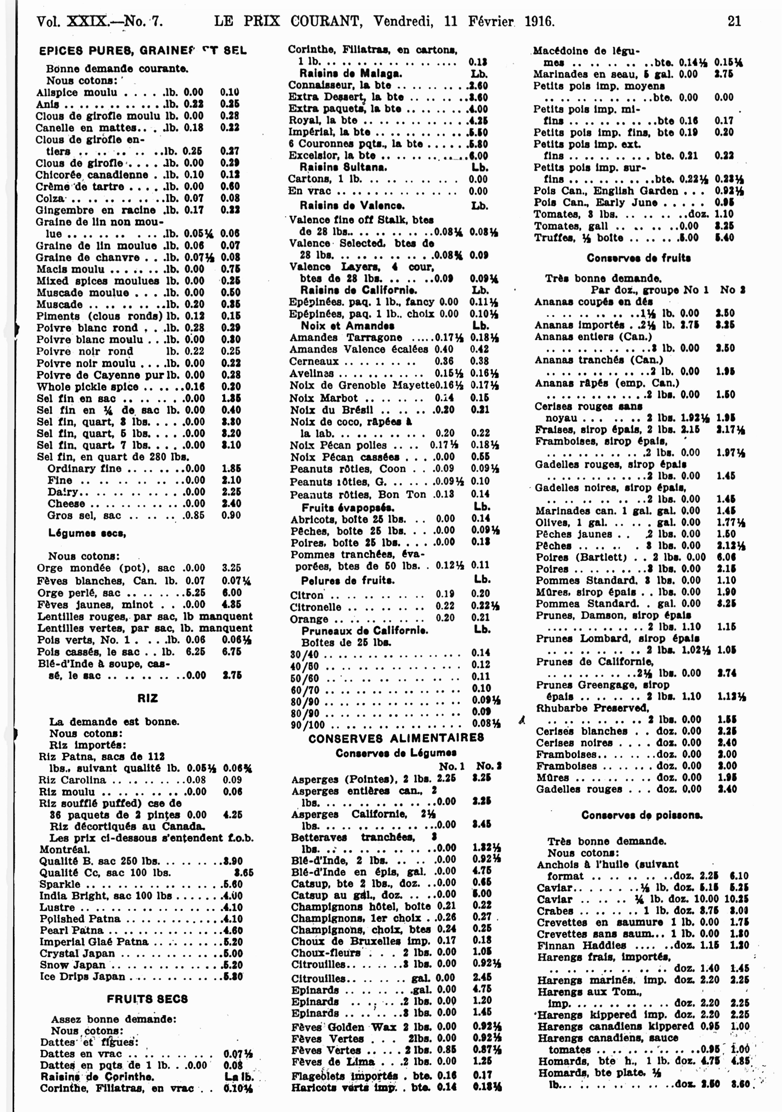 Le prix courant : Vol. 29, no 7 (11 févr. 1916)