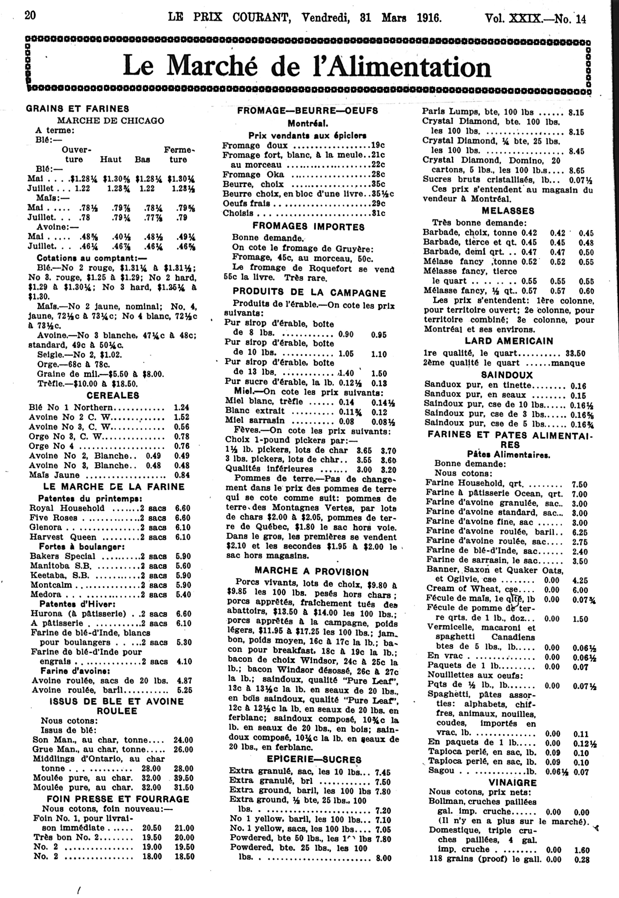 Le prix courant : Vol. 29, no 14 (31 mars 1916)