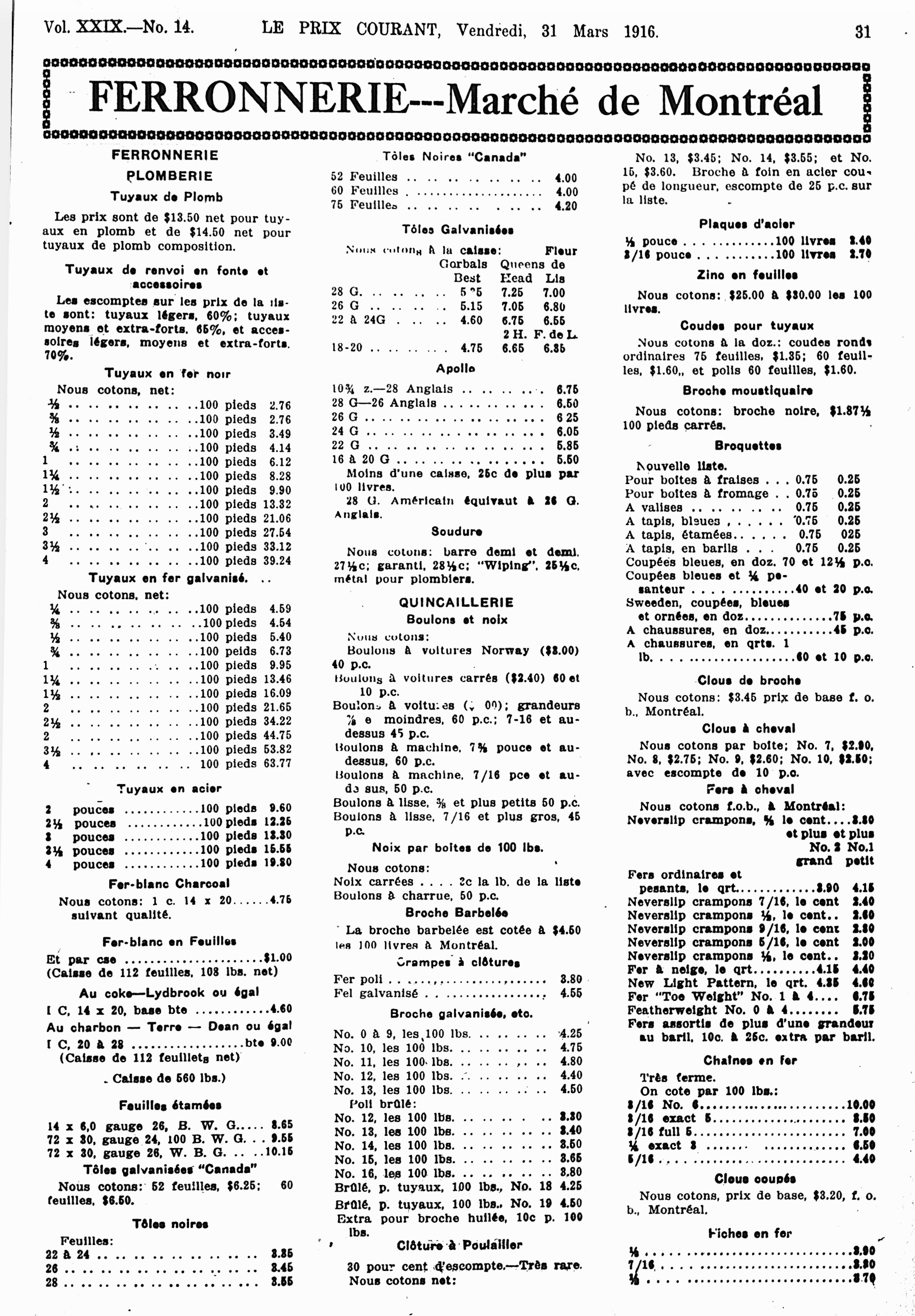 Le prix courant : Vol. 29, no 14 (31 mars 1916)