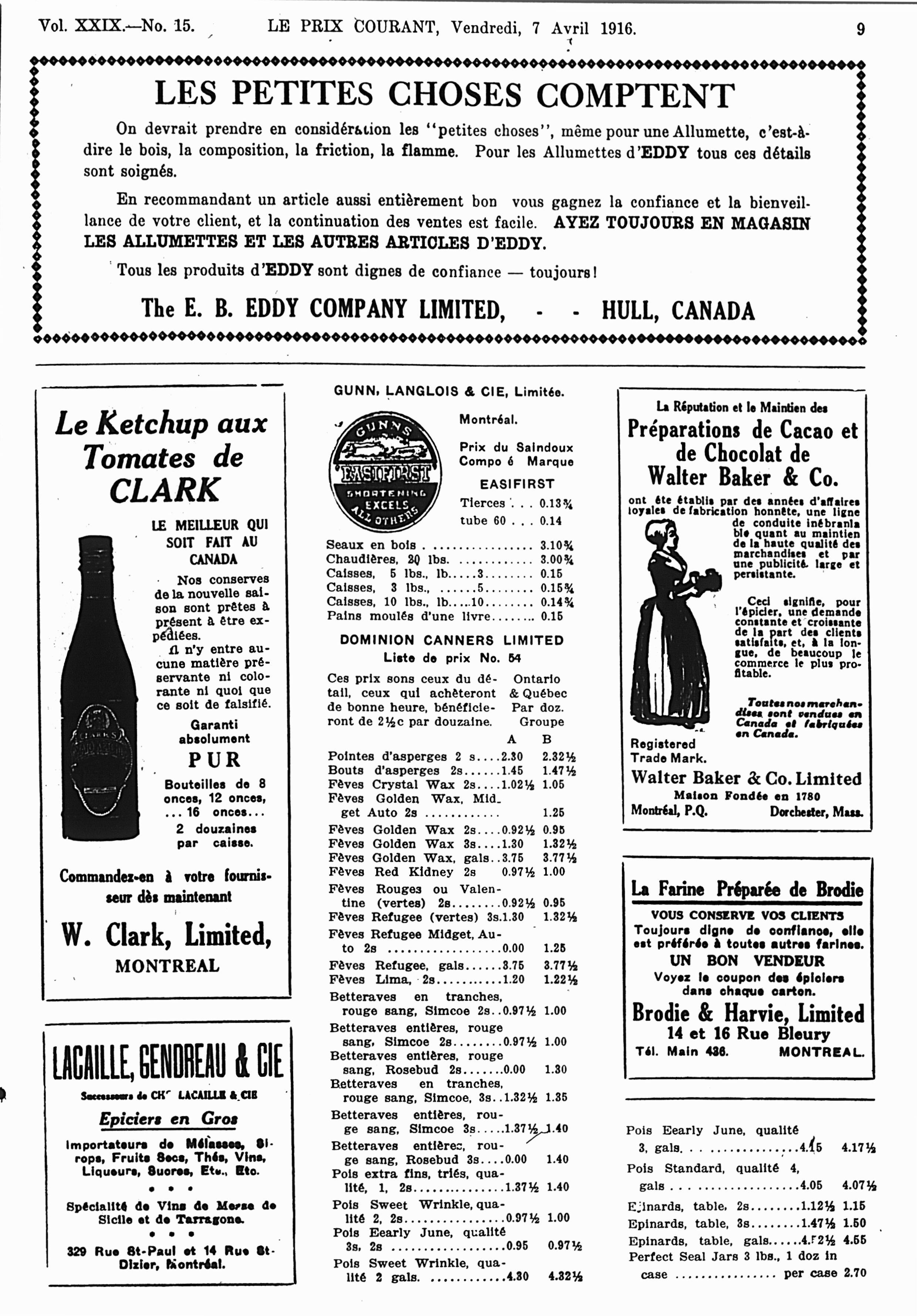 Le prix courant : Vol. 29, no 15 (7 avril 1916)