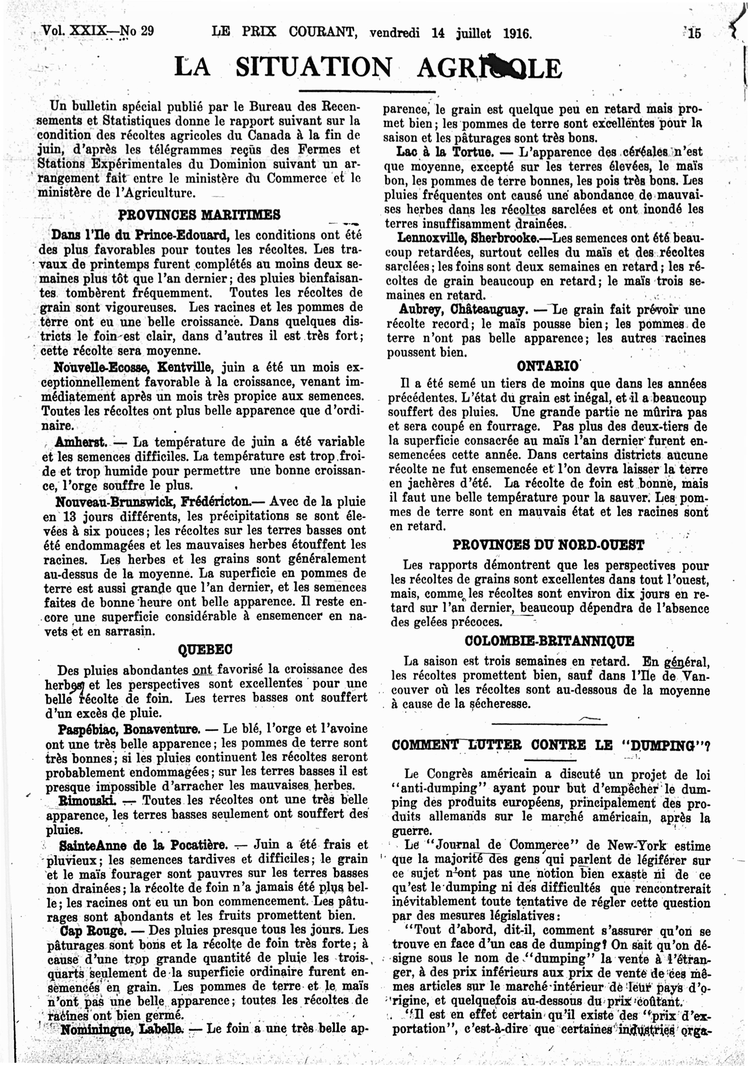 Le prix courant : Vol. 29, no 29 (14 juil. 1916)