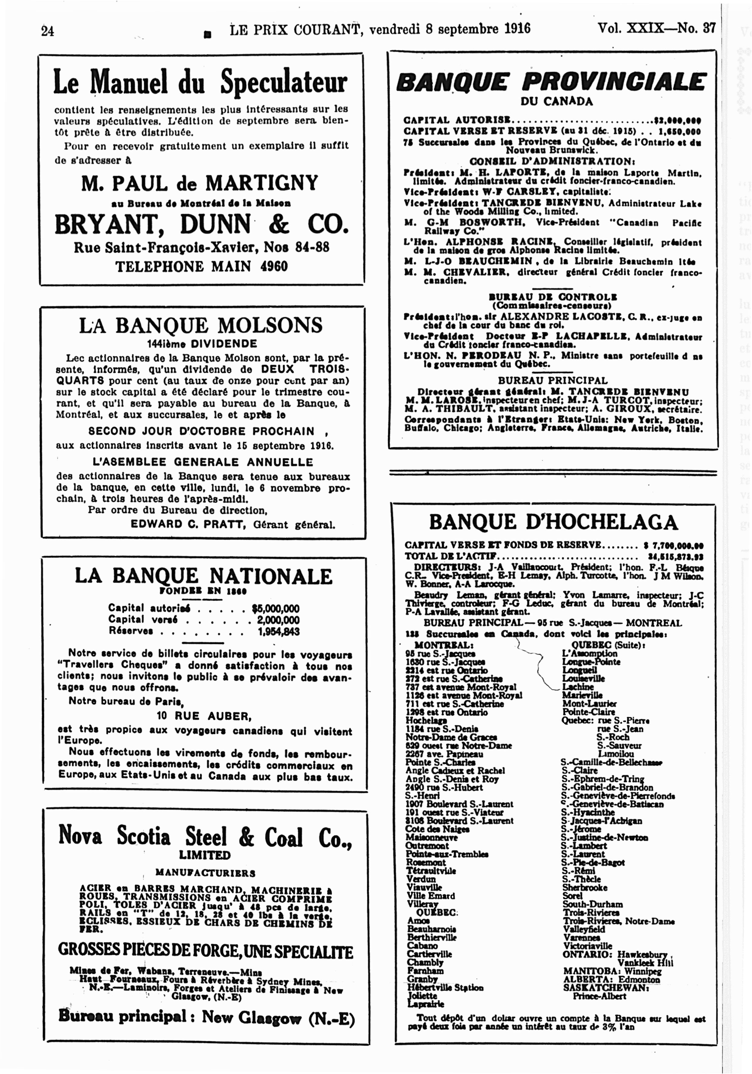 Le prix courant : Vol. 29, no 37 (8 sept. 1916)