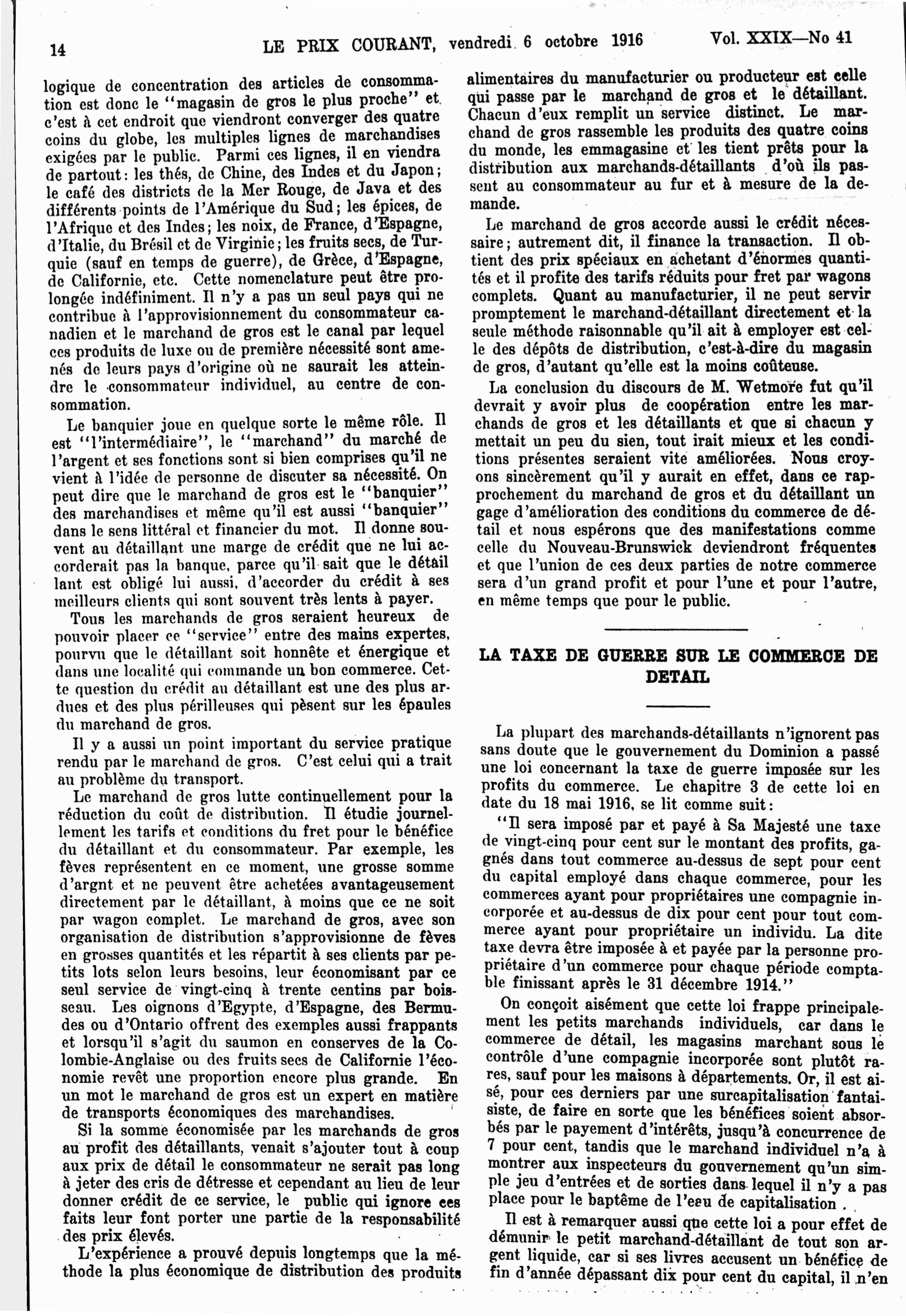 Le prix courant : Vol. 29, no 41 (6 oct. 1916)