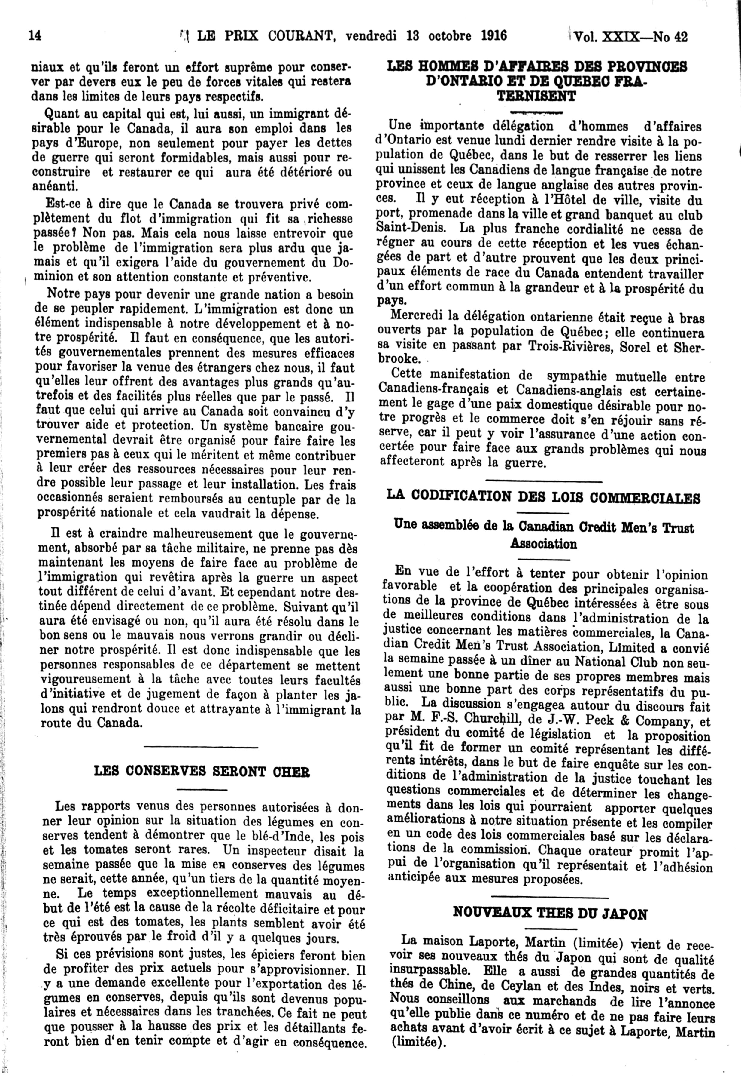 Le prix courant : Vol. 29, no 42 (13 oct. 1916)