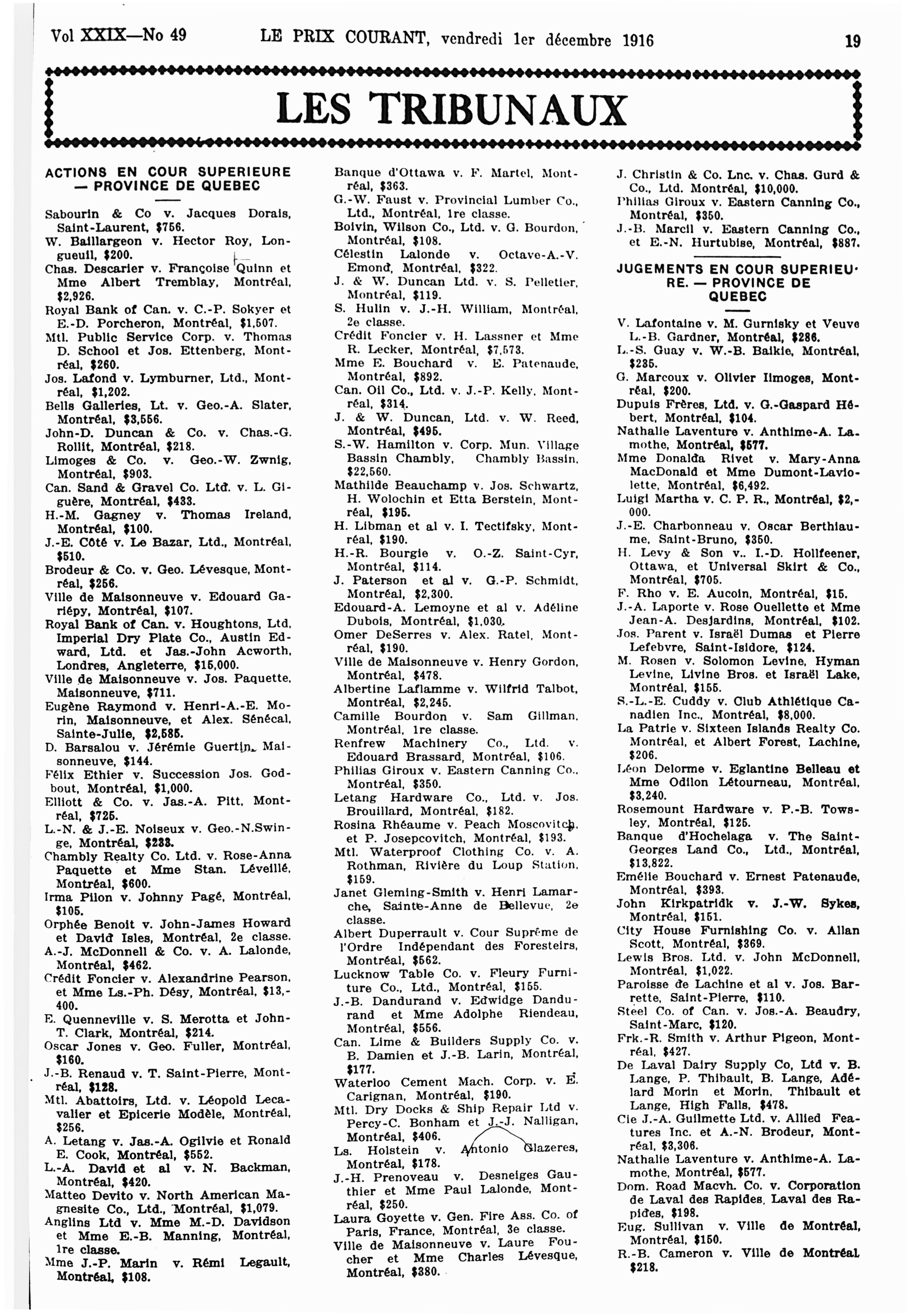 Le prix courant : Vol. 29, no 49 (1 déc. 1916)