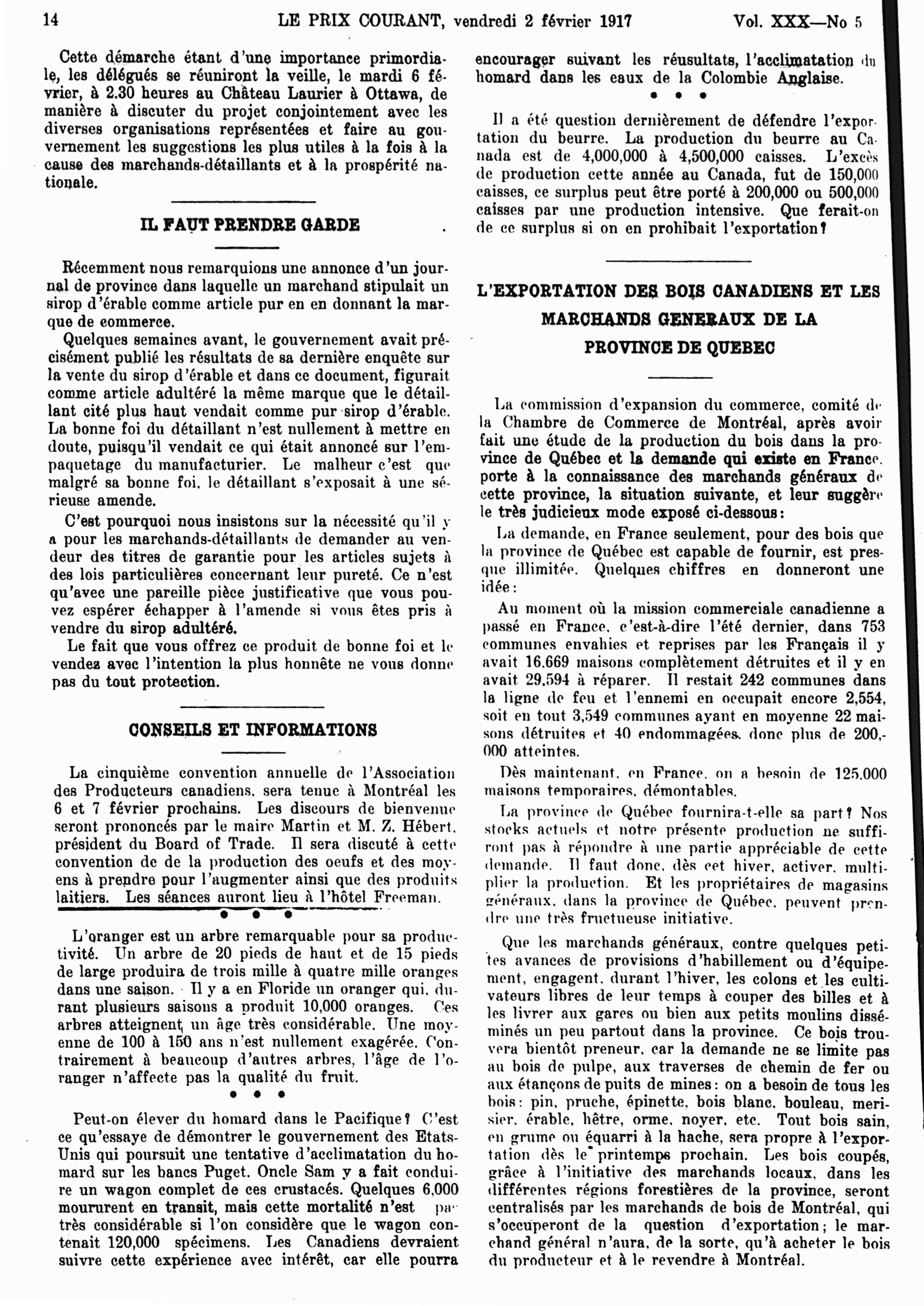 Le prix courant : Vol. 30, no 5 (2 févr. 1917)