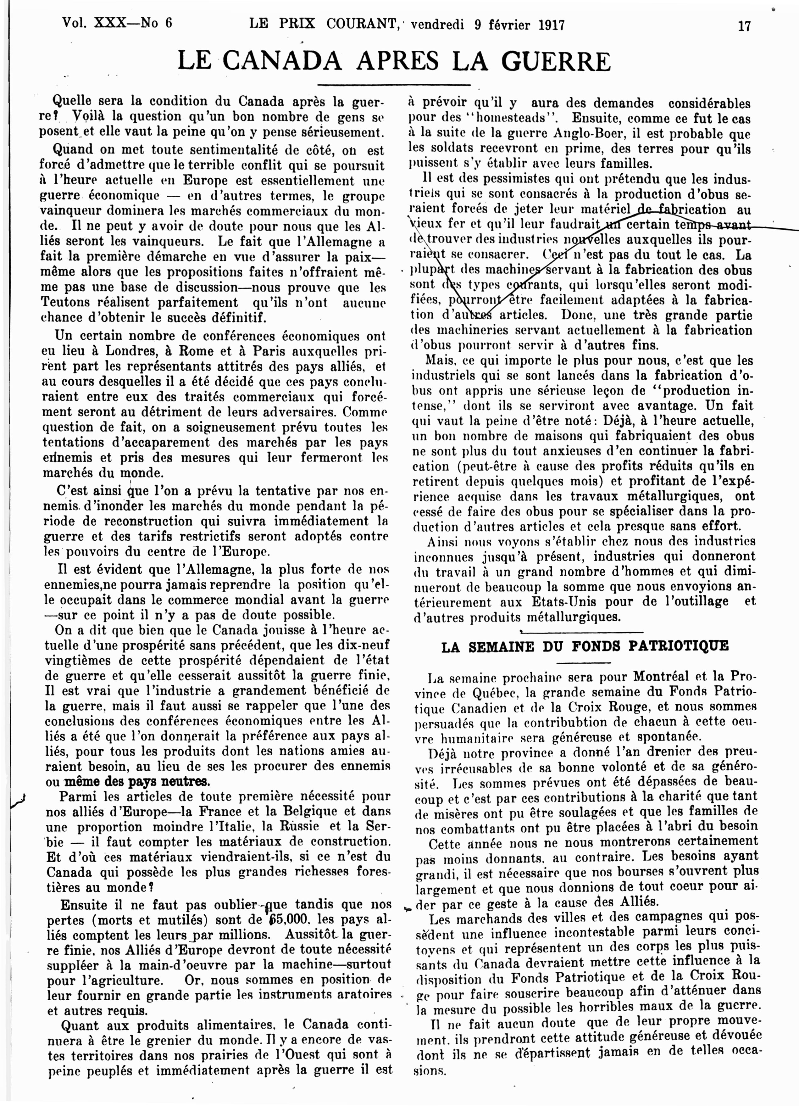 Le prix courant : Vol. 30, no 6 (9 févr. 1917)